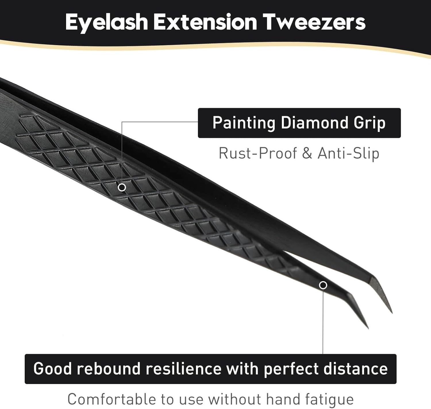 Ms.Queen Lash Extension Tweezers, Fiber Tip Lashing Tweezers for Volume & Individual Eyelash Extensions,Black