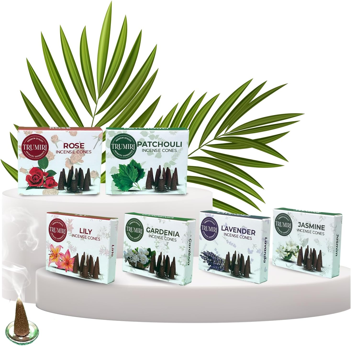 - Exceptional Value - With 60 cone incense (6 scents x 10 conos) in one pack, our Trumiri Floral Incense Cones offer you the best value to create a captivating and aromatic atmosphere in your home.
