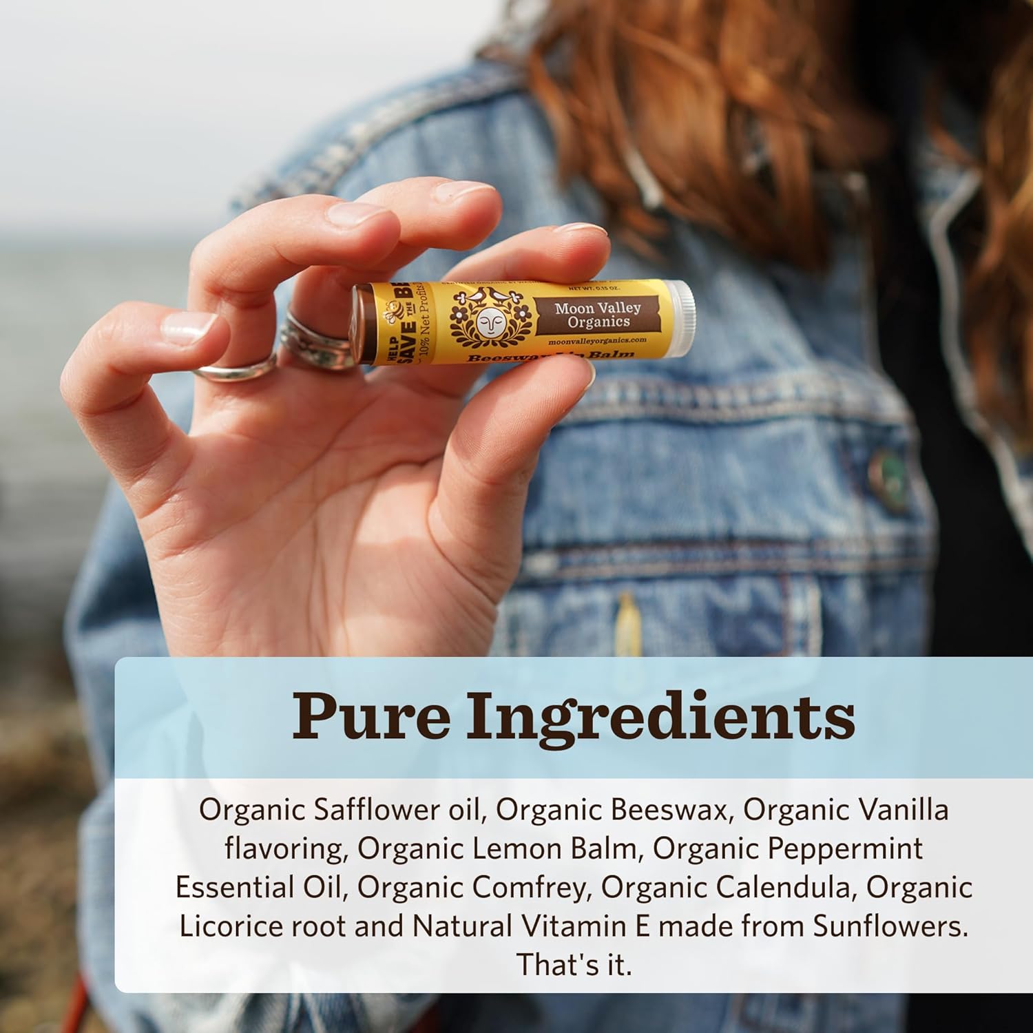 - COOL MINT VANILLA LIP BALM: Moon Valley Organics lip balm in cool mint vanilla uses organic ingredients, including essential oils, to deliver maximum moisture to your lips and cuticles. This is a bundle of 6 x 0.15 oz sticks.