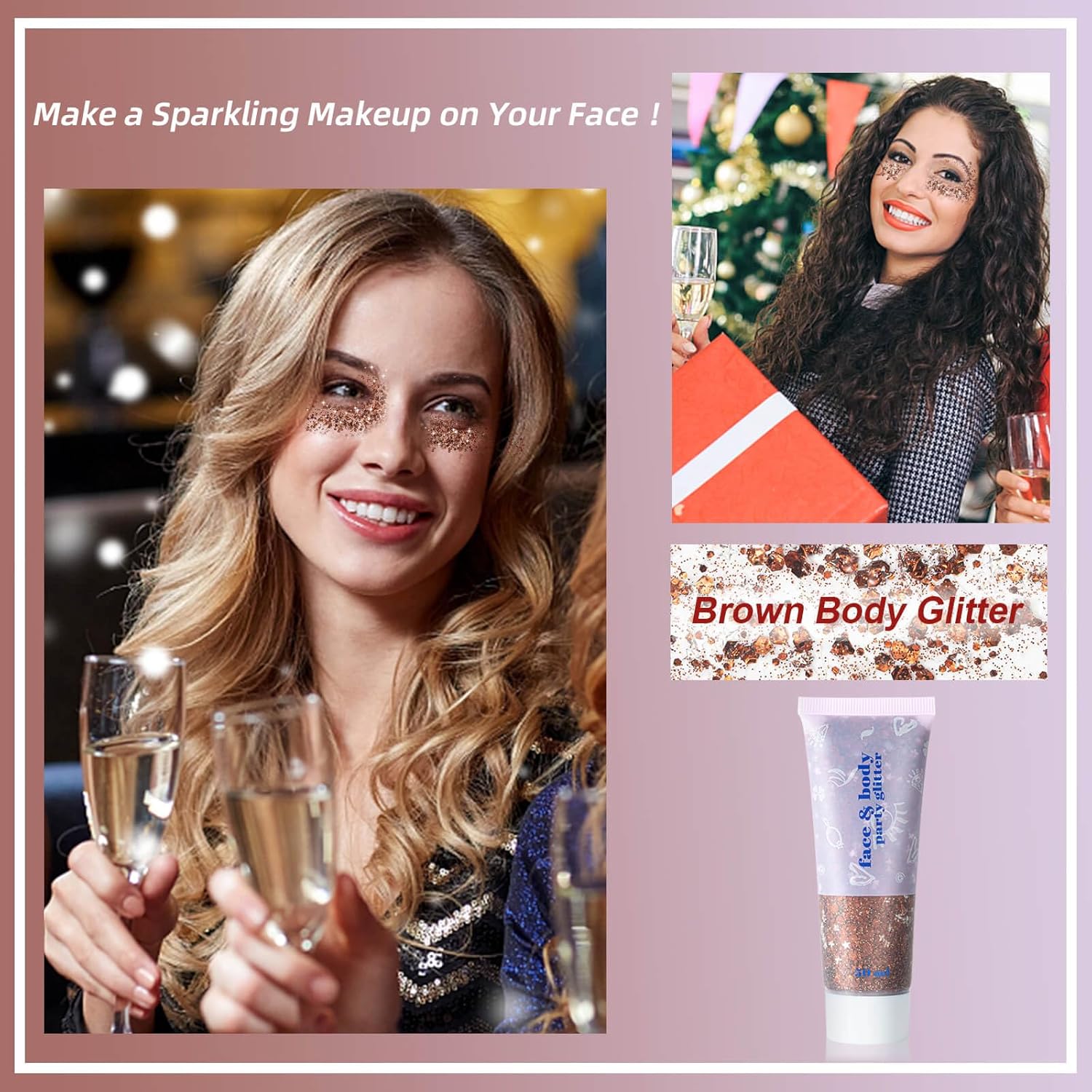 - Multiple Colors Available --- Our holographic body glitter are rich in many colors,large tube contains 50ml body glitter gel. Large number of holographic sequins with small stars,hexagon and round shape, the color and shine of the laser sequins vary with the perspective,great deer body glitter for cosplay makeup,perfect christmas body glitter for christmas theme party