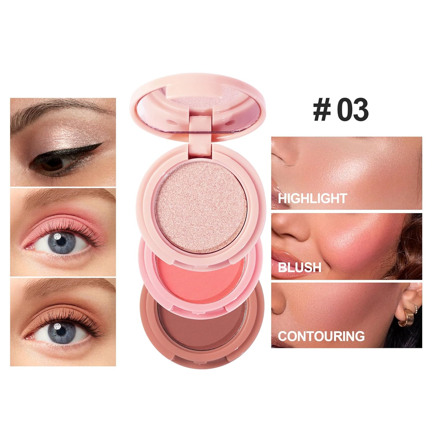 Makeup Eyeshadow Palettes, 3-in-1 Protable Multifunction Blush Highlighter Contour Palettes with 3 Trend Colors for Daily Natural Luster Makeup, Waterproof Long Lasting - 2 Pack #4