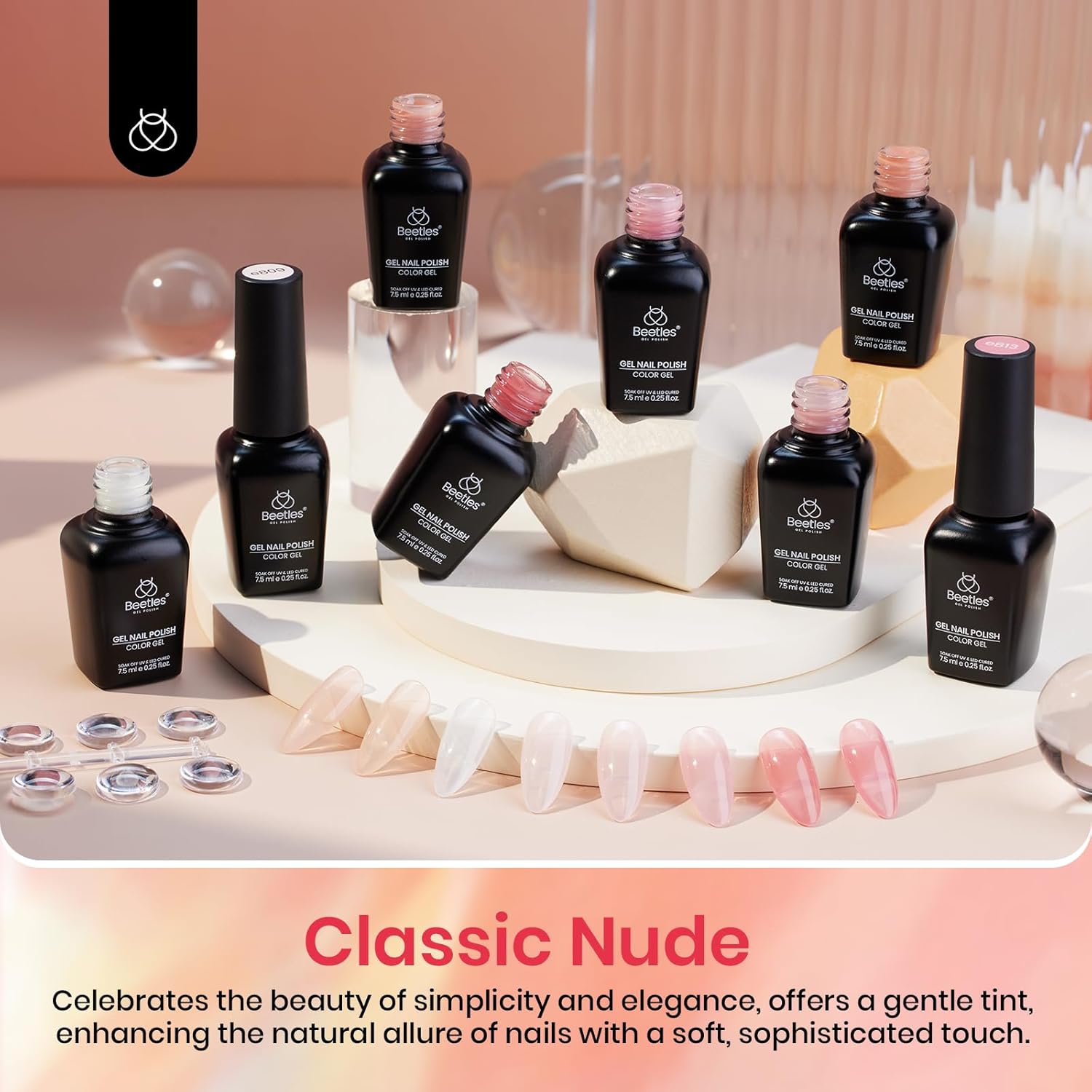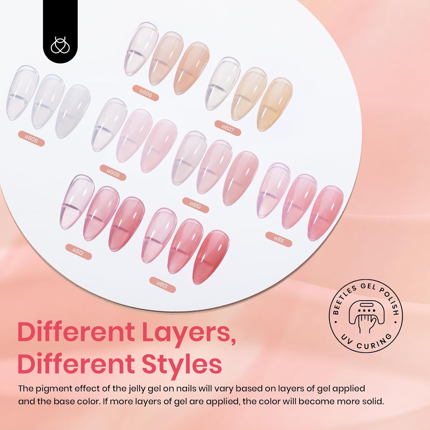 Beetles Jelly Gel Nail Polish Set, 8 Colors Nude Pink Neutral Sheer Milky White Gel Polish Kit Translucent Effect Spring Summer French Nail Art Nail Concealer Soak Off UV Manicure Gift for Women