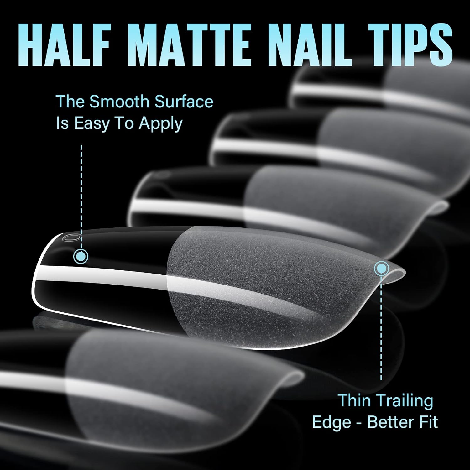 TOMICCA Medium Coffin Nail Tips, 240Pcs Half Matte Nail Tips, 15 Sizes Nail Extension Tips Set, Full Cover Pre Shaped Fake Nails for Beginner and Professional DIY Nail Salon