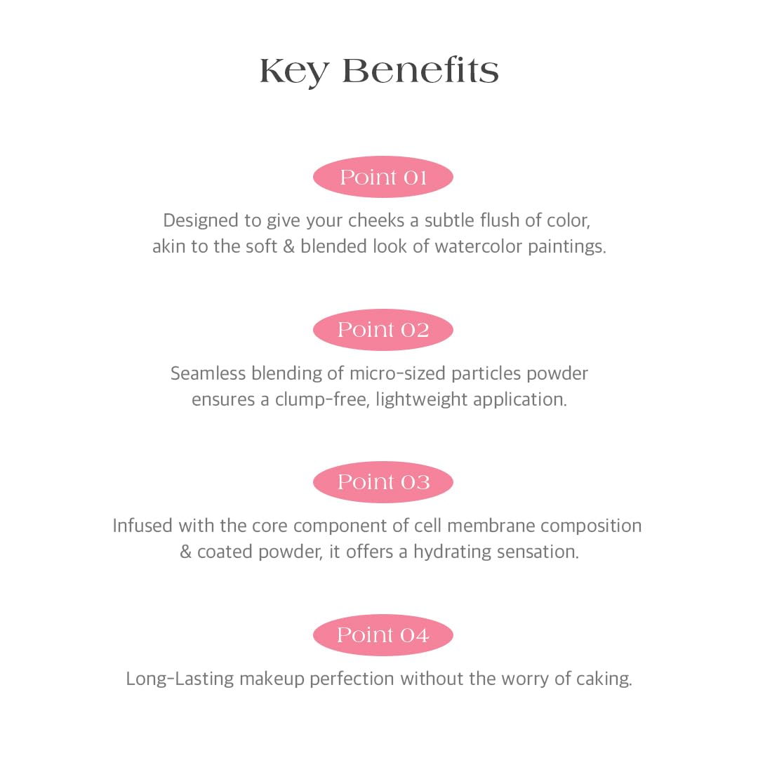 - Sophisticated blush like watercolor paintings - Five shades thoughtfully curated for compatibility with both warm and cool-toned skin tones.
