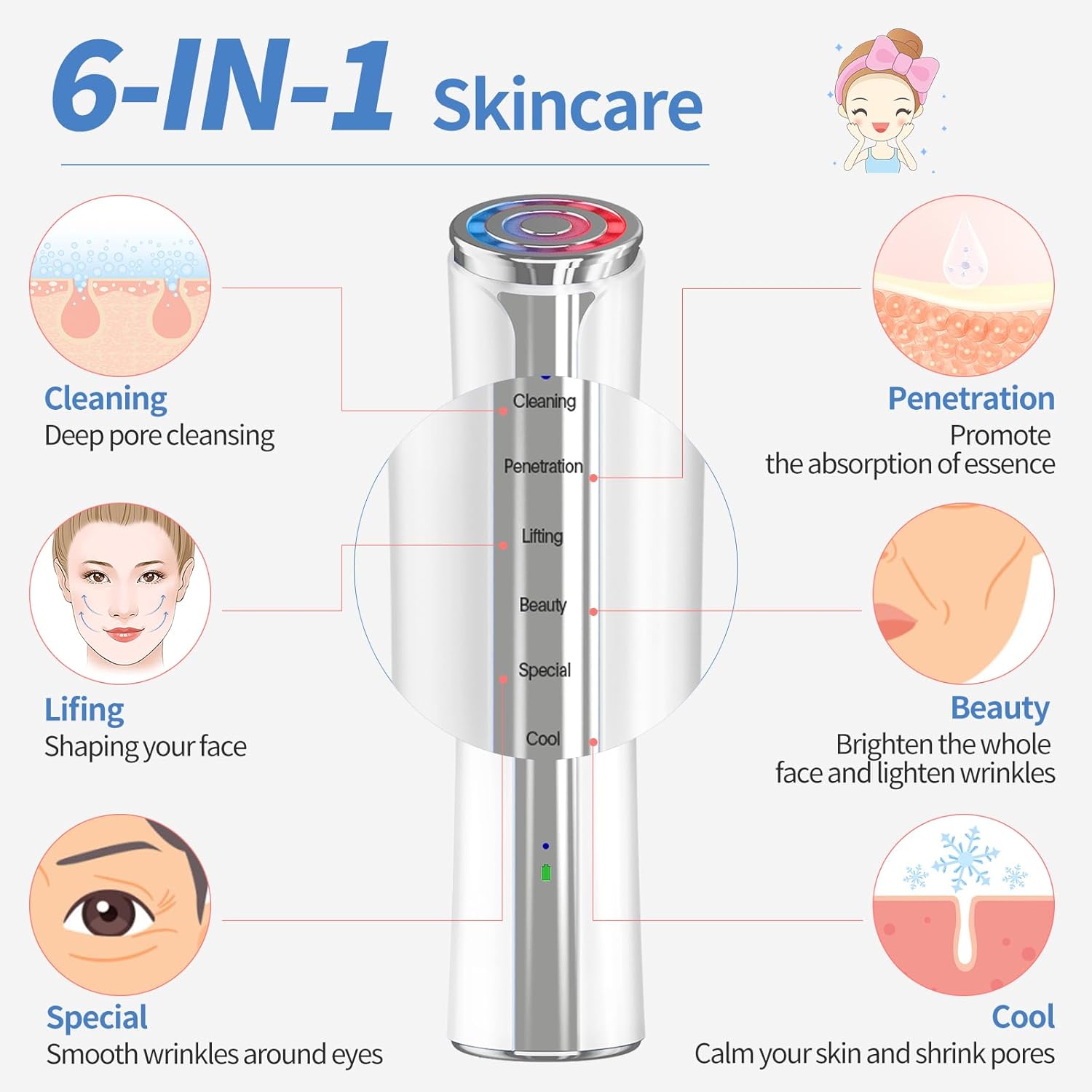 Texet Microcurrent Facial Device, Facial Massager, Home Use Skin Tightening Machine Light Therapy for Face Eye Neck Lifting 6 in 1 Skin Care Tool