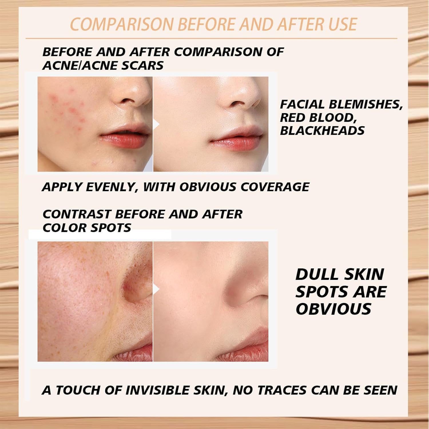 - Full Coverage Concealer Cream - Our color correcting palette expertly chosen to work together to conceal problem areas, fix the flaws of your face, helps conceal trouble spots; yellow neutralize dark spots and dark circles; Orange brighten dullness, sallowness, yellow undertone; green concealer can neutralize the overly fair skin tone and make the skin appear healthy pink.