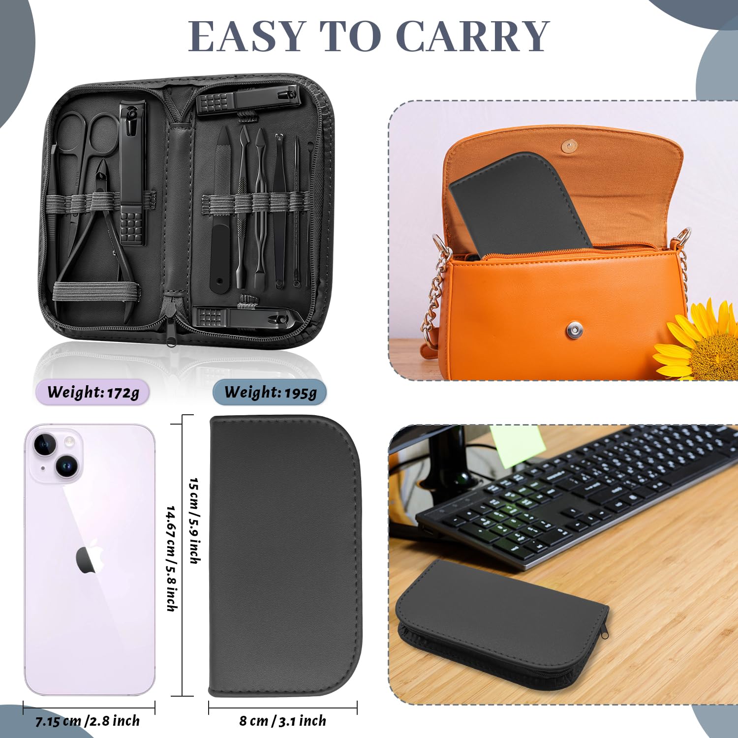 - Professional Nail Care Kit: Made of high-quality stainless steel, nail clippers are sharp and durable. Large, small, diagonal clippers can cut every corner of nails and trim thick/hard nails easily. The nail grooming kit is coated with an anti-rust black coating, which is pretty and practical, and also not easy to rust.