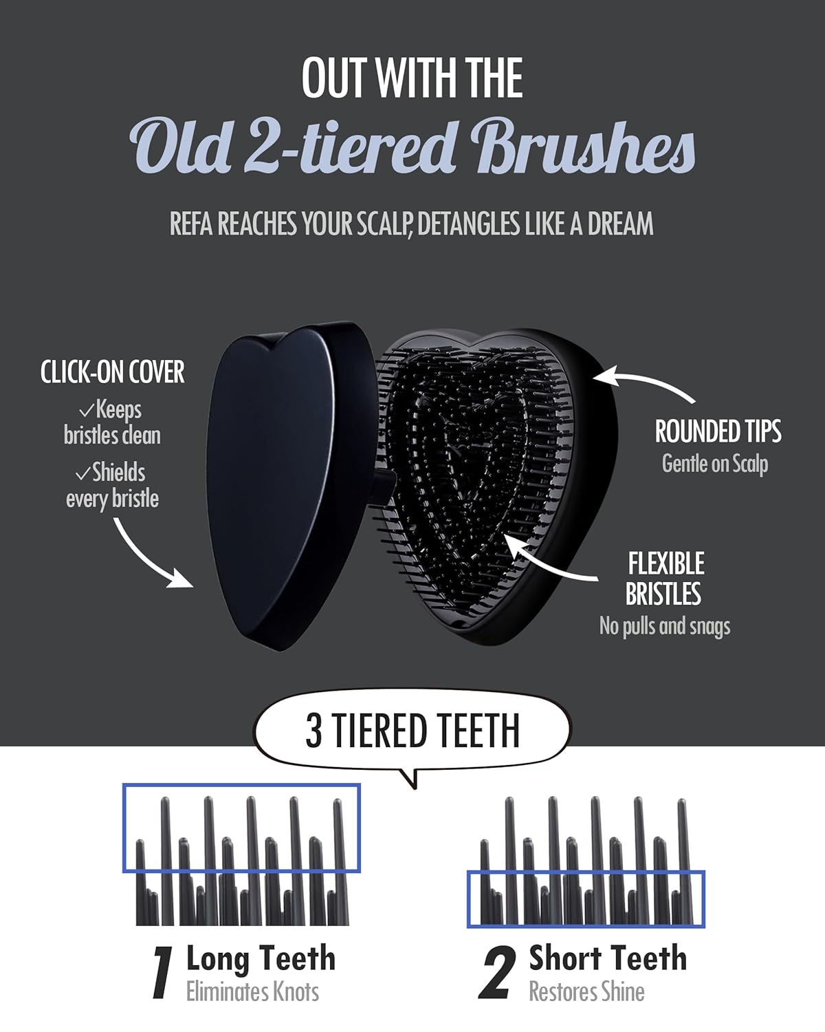 - EFFORTLESS DETANGLE. Discover effortless hair management with the ReFa Heart Brush. This hair brush for women and men has a three-tiered bristle system that makes detangling a breeze whether you have thick or fine hair. A must-have detangling brush in your arsenal.