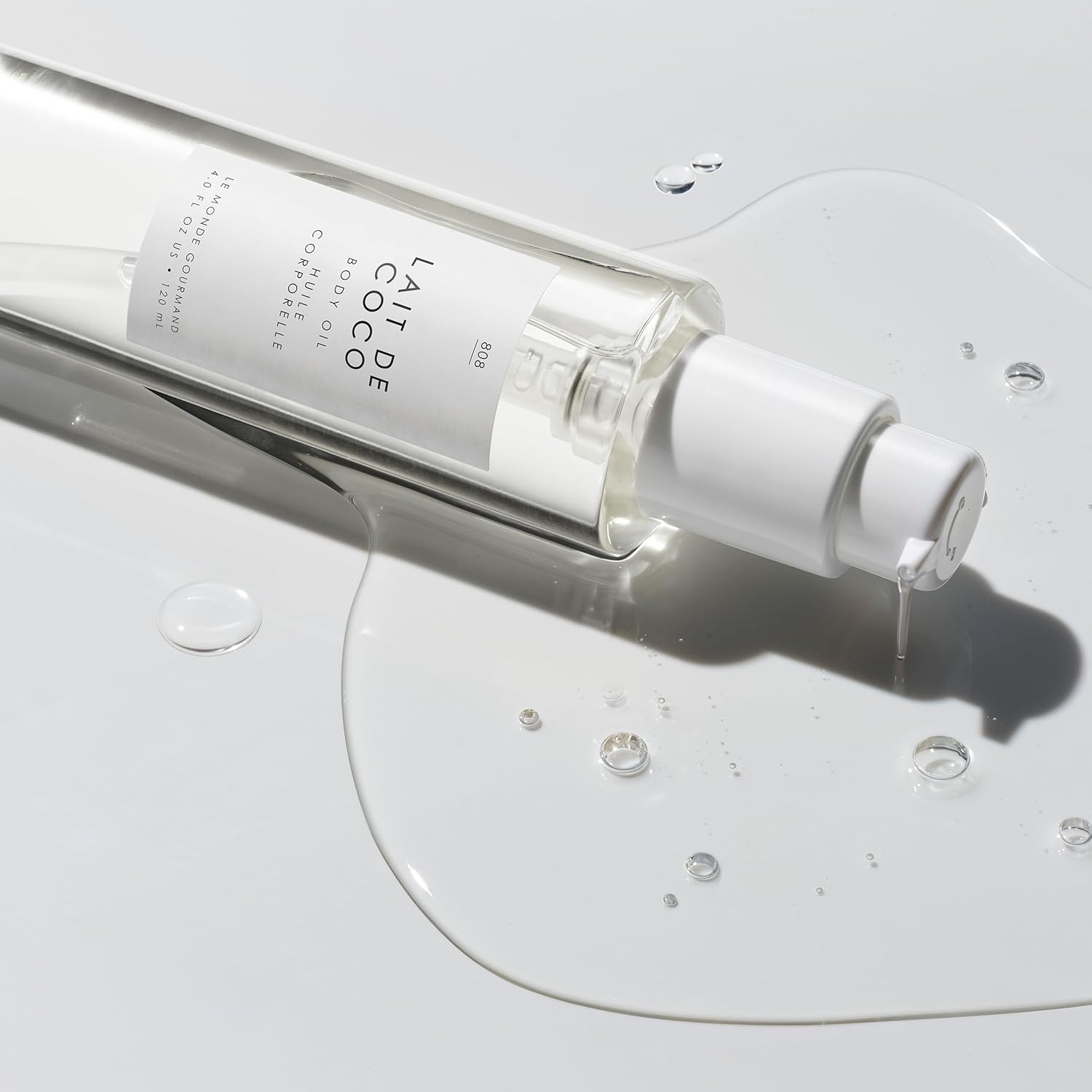 - Weโve taken our beloved Lait de Coco scent and transformed it into an ultra rich body oil that transforms skin from parched to parfait. Quick to absorb, Apricot and Sweet Almond Oils nourish skin, while vegetable derived vitamin E and antioxidants help retain the appearance of pampered skin. This can be used as a nourishing bath oil, a gentle body cleanser in the shower or massaged into the skin for maximum hydration and glow.