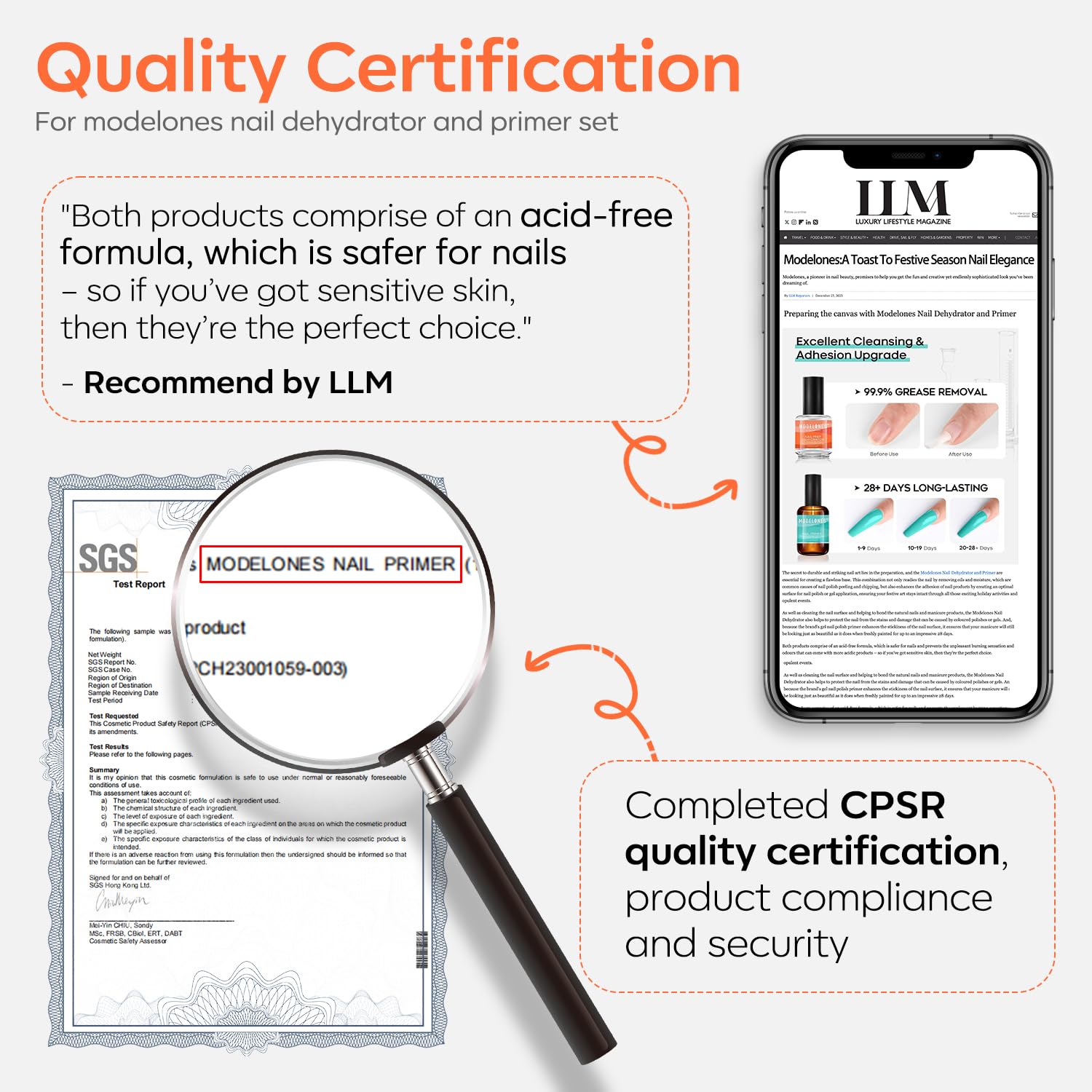 - Compatible with all mani-products: The NAIL PREP DEHYDRATOR can be used with all gel nails, acrylic powder, extension gel, cuticle oil, acrylic nail supplies, nail tips, gel nail kit and liquid systems, as well as any artificial nail art. The NAIL PRIMER is used with gel polish only. They work great with all leading professional nail care brands in the market