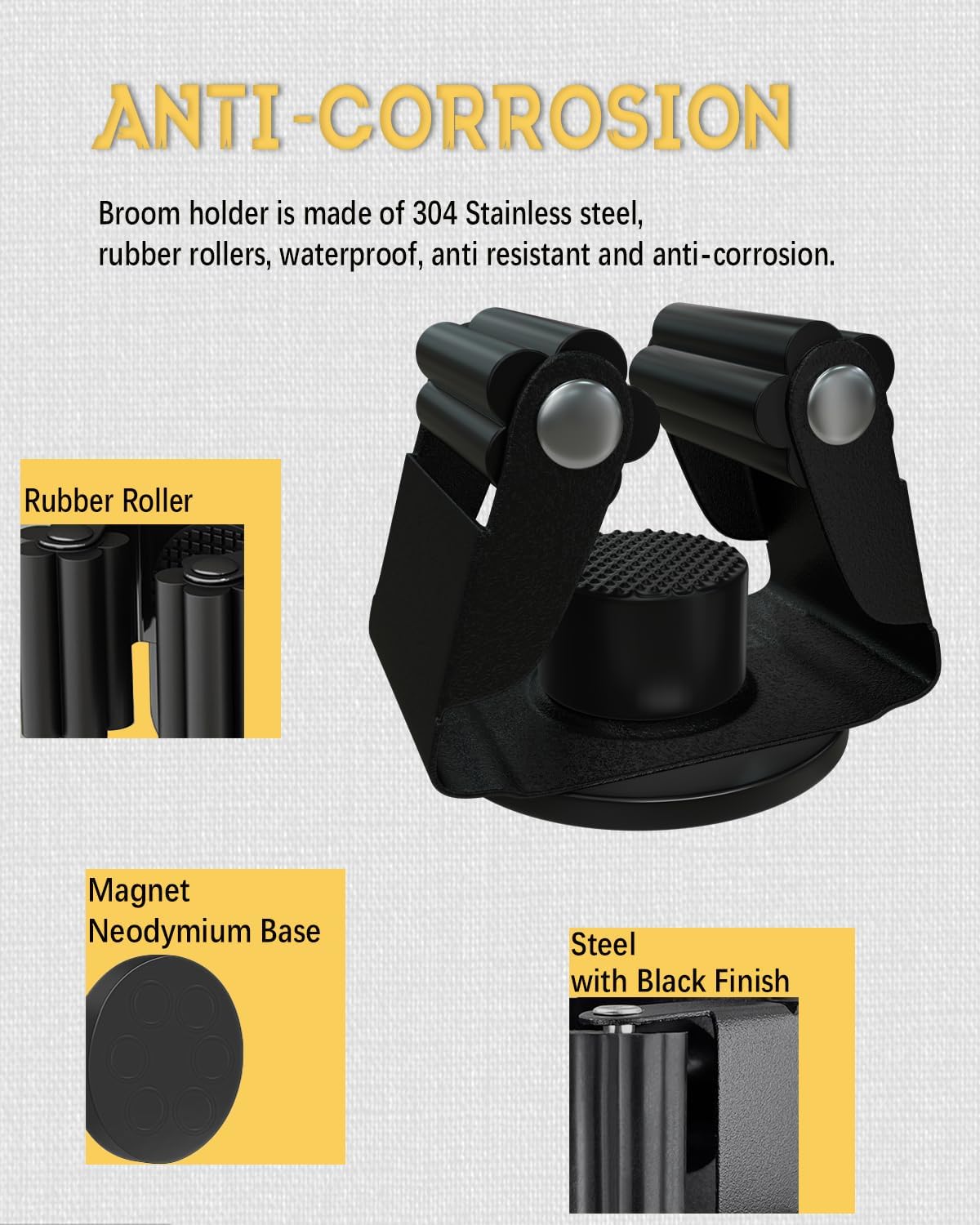 - Steel material: magnetic mop broom holder is made of sus304 stainless steel; anti corrosion and tarnishing; adapting rubber roller; building to resist daily scratches; much strong and sturdy than plastic one in the market