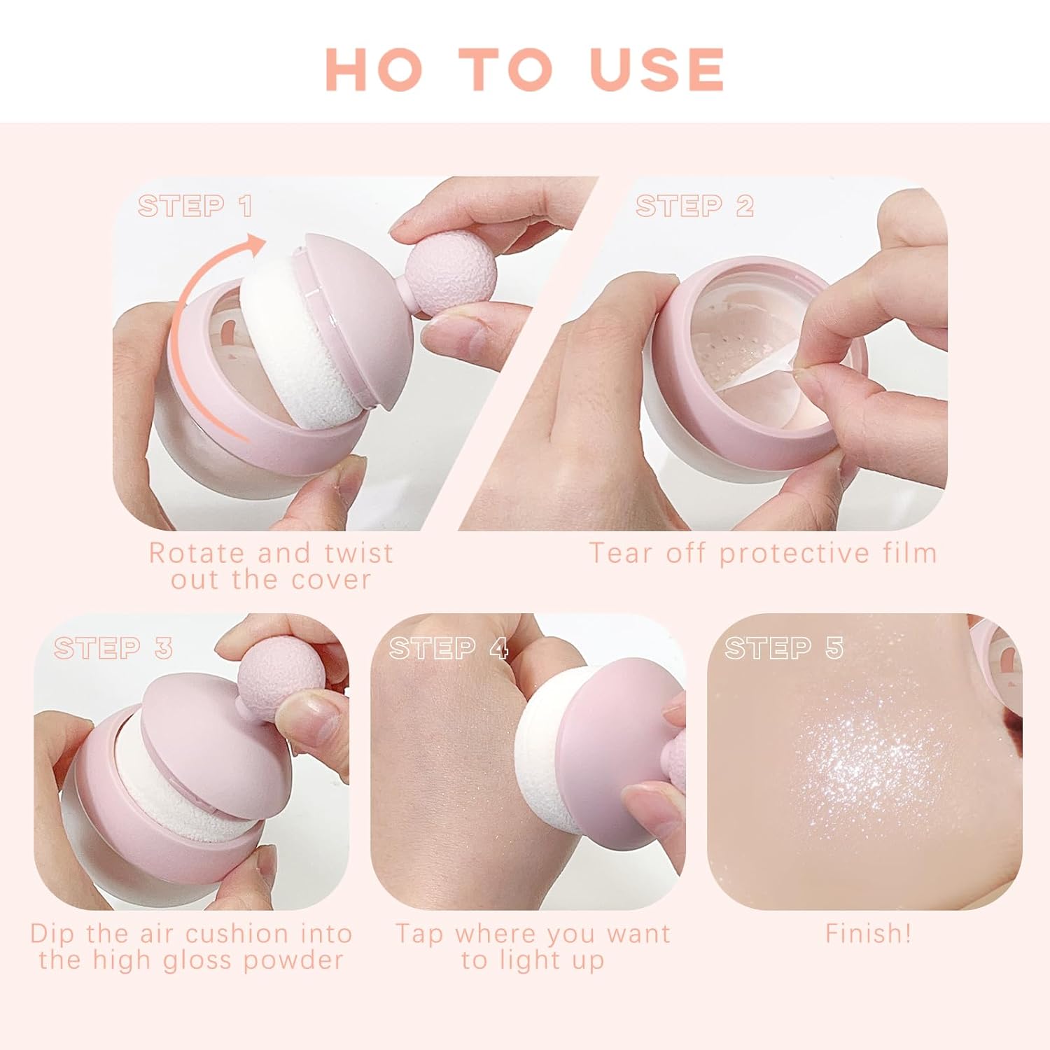 - 【Light Texture & Long-lasting shine】This product is glossy, with a refreshing, non-greasy texture and strong adsorption that adheres well to the skin, while helping to absorb excess oil, not clogging pores, and covering skin imperfections. The shimmering effect is long-lasting, leaving you glowing and glamorous!