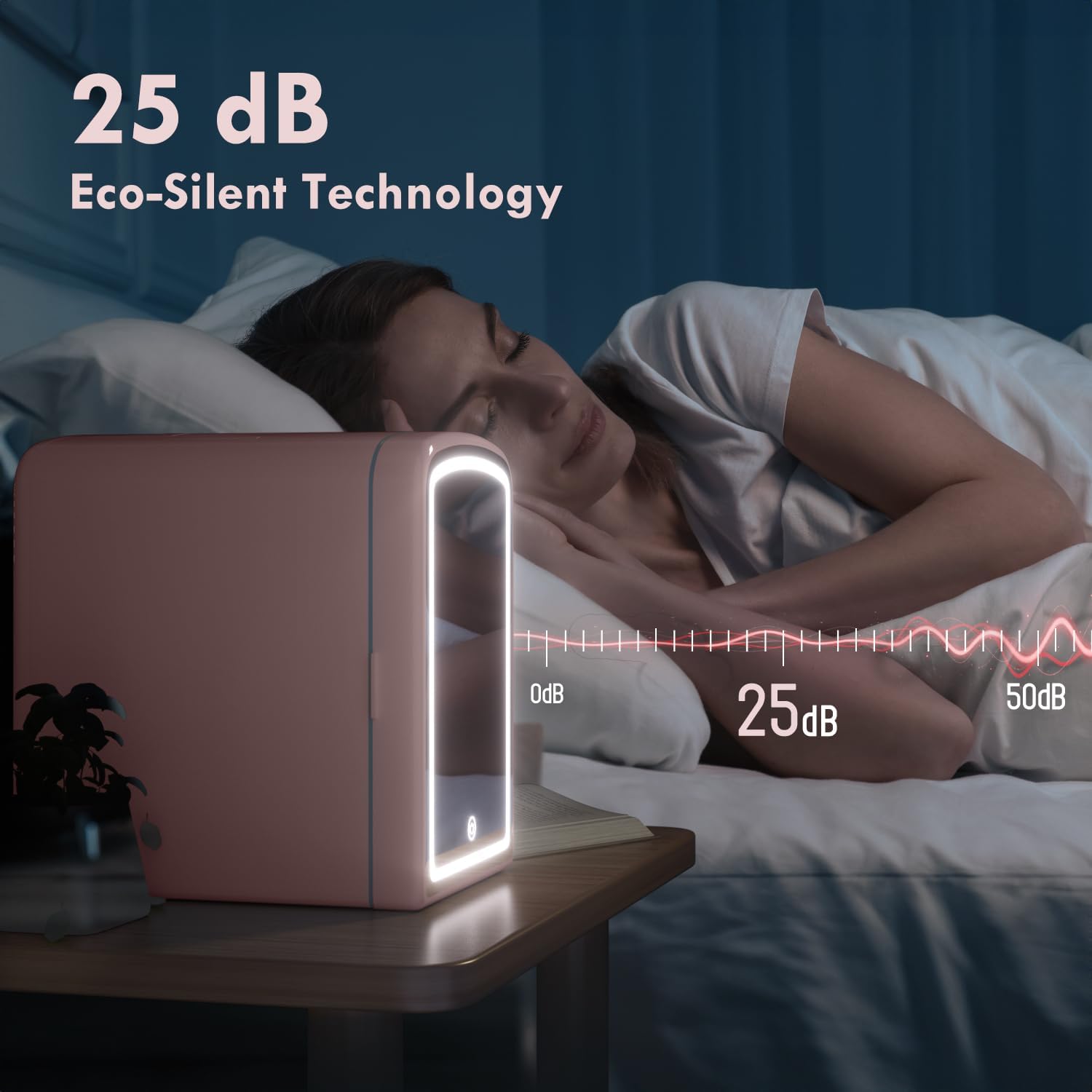 Mini Fridge for Skin Care, 4 Liter Portable Small Fridge with Dimmable LED Mirror, Hot or Cold Personal Beauty Refrigerator for Bedroom, Office, Car, Makeup(Pink)