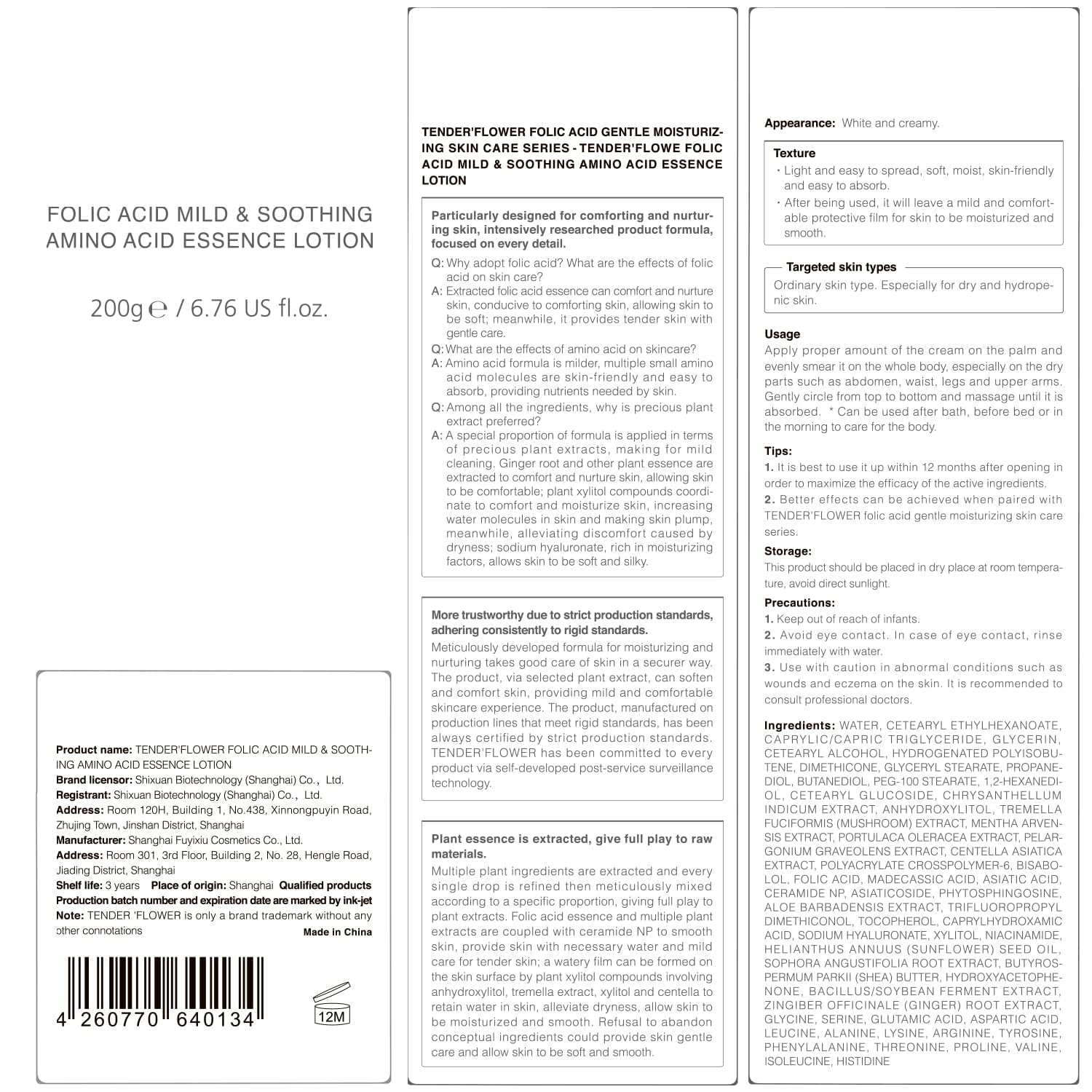 Body Lotion with Folic Acid,Stretch marks cream,Hyaluronic acid body lotion,Shea butter,Skin Firms, Smooth, unscented cream,sensitive skin, Moisturizing Dry Skin (6.7oz)