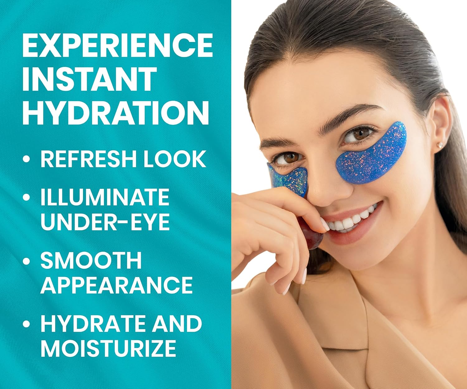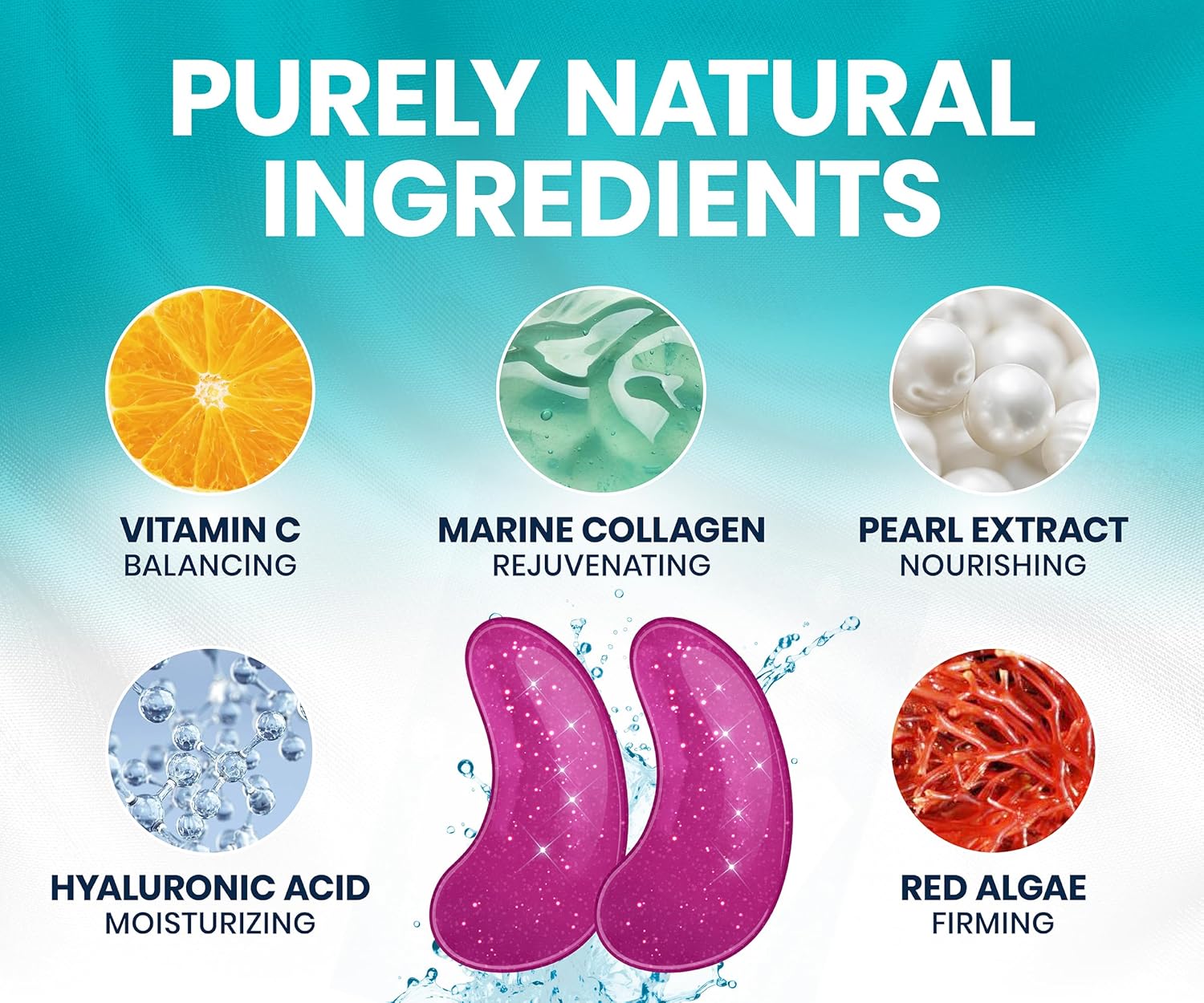 - DARK CIRCLES UNDER EYE TREATMENT FORMULATED FOR YOU β Indulge in luxury with your glitter under-eye mask patches, gentle for all skin types. Made with vitamin c, hyaluronic acid, collagen, pearl extract, and red algae. Never animal tested.