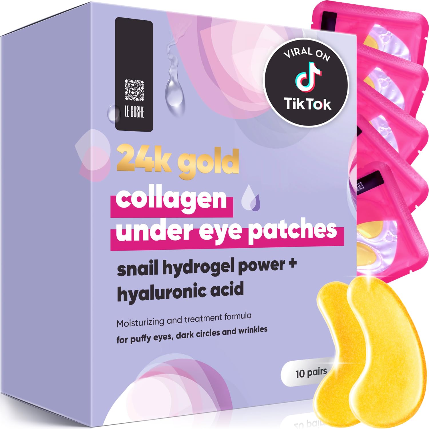 LE GUSHE Under Eye Mask & Under Eye Patches (10 Pairs) - Gold Eye Mask with Collagen & Amino Acid, Cooling Eye Care for Wrinkles, Puffy Eyes & Dark Circles, Brightening Skincare