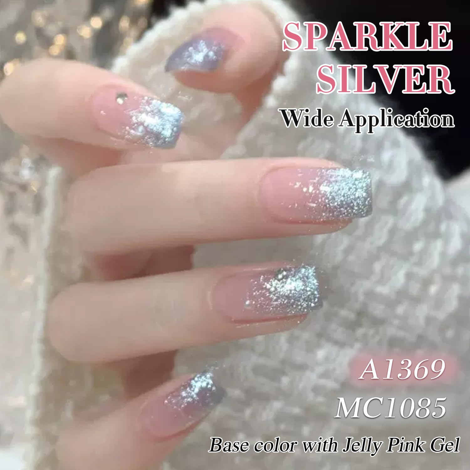 Double Rhythm 15ML Glitter Gel Polish 0.5Oz Shimmer Reflective Color for Nail Art Salon DIY at Home (Cat Eye Silver-MC1085)