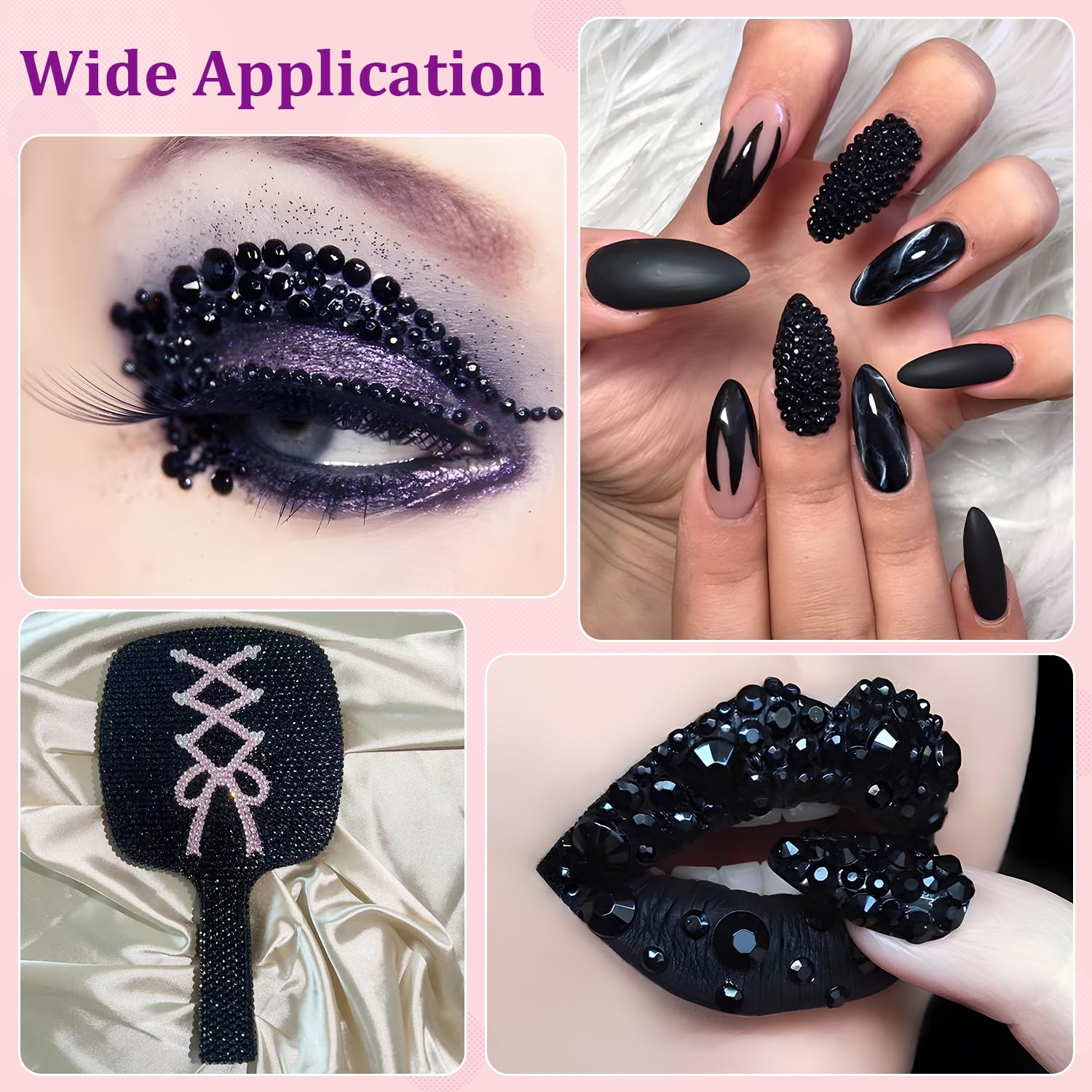 30000Pcs Black Rhinestones for Bedazzling Crafting, Flatback Resin Gems Crystal, Bedazzler Kit with 3Pcs 10ml B7000 Jewelry Glue and Tweezers for DIY Crafts Clothing Shoes Fabric Nail Art
