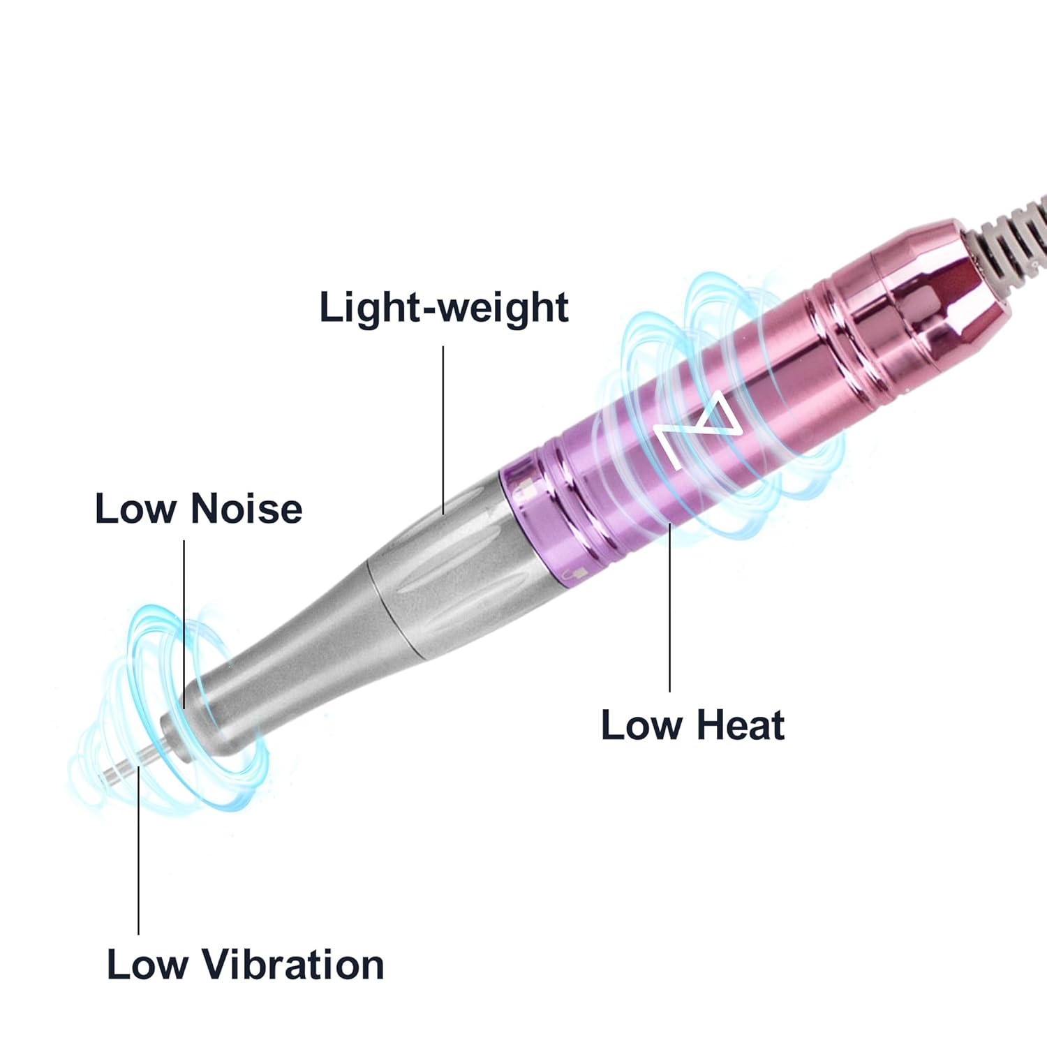 - 35,000 RPM without Noise: Our M professional nail drill machine coreless motor ensures you are able to nail the perfect manicure with whisper-quiet precision. The CE-certified high-speed bearings and aluminum handpiece makes nail shaping a breeze and an all round enjoyable experience