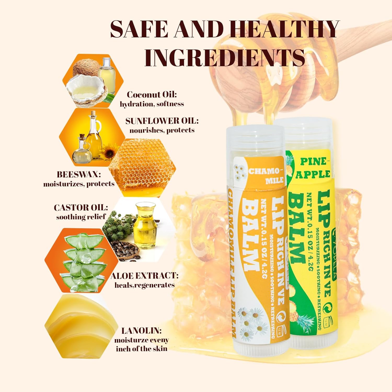 - Indulge in 9 Exquisite Flavors - Treat your lips to a variety of delightful flavors including Strawberry, Cremebrulee, Chamomile, Cake, Pineapple, Mint, Vanilla, Honey, and Coconut. Perfect for the whole family and makes a wonderful lip balm