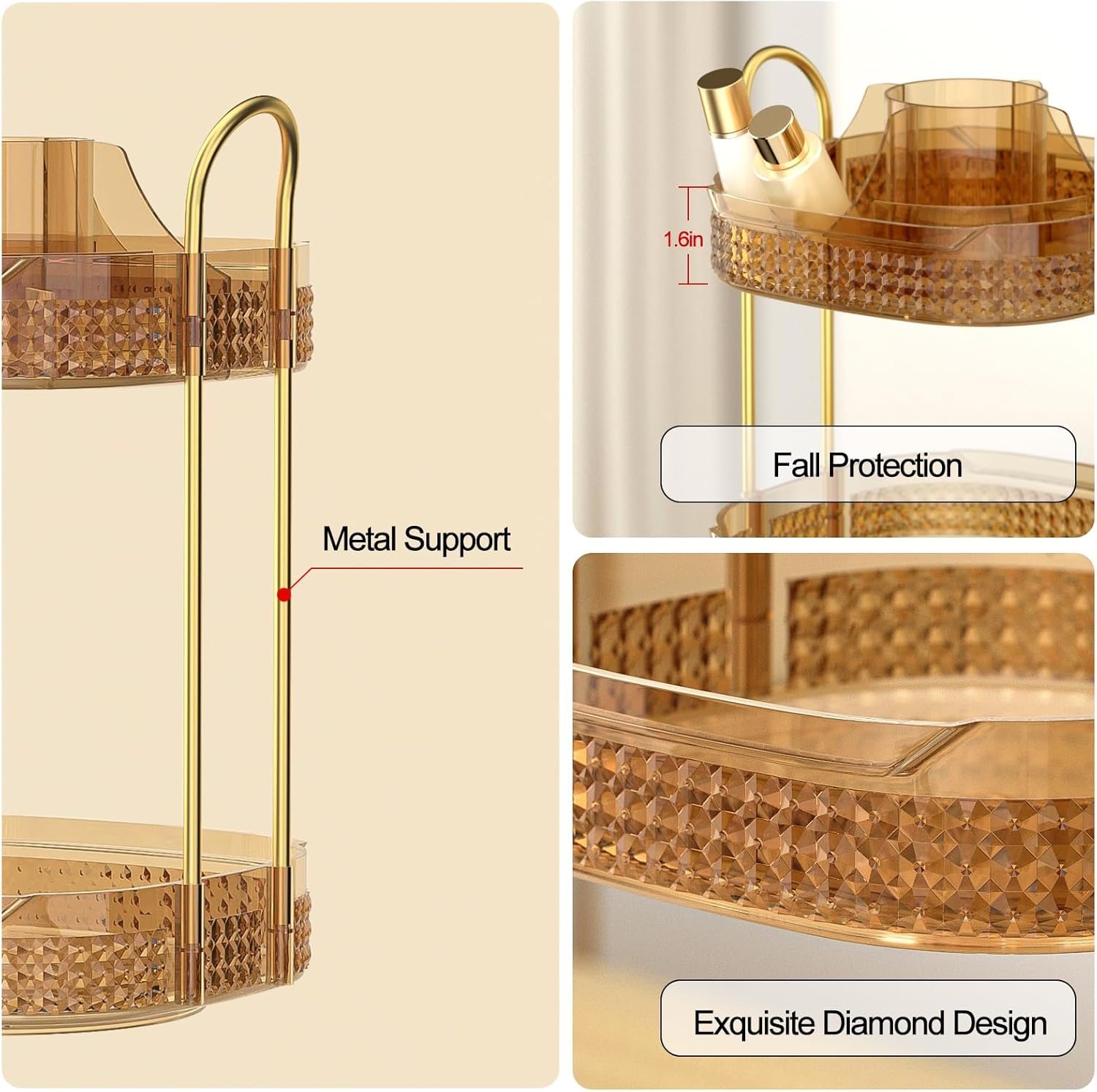 - 2 Tier Lazy Susan Organizer: Skincare organizer and storage comes with brush holder and compartments at the top, the lower layer is designed with a height of 8.27 inches, fearless of high bottles, to meet more storage needs. Let you change the storage space from square to cube, save countertop area