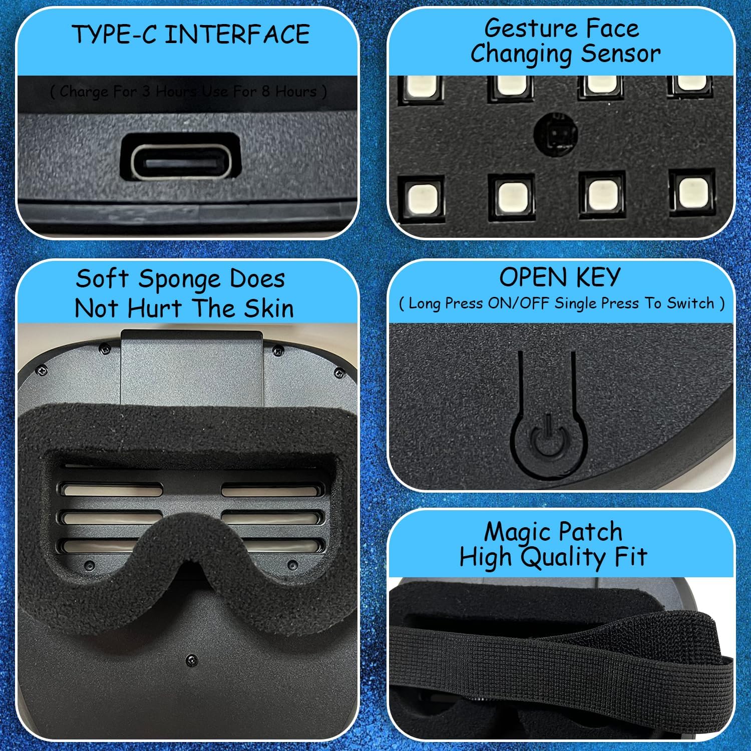 Led Mask with Gesture Sensing, Light up Face Transforming Mask for Halloween Xmas Costume Party
