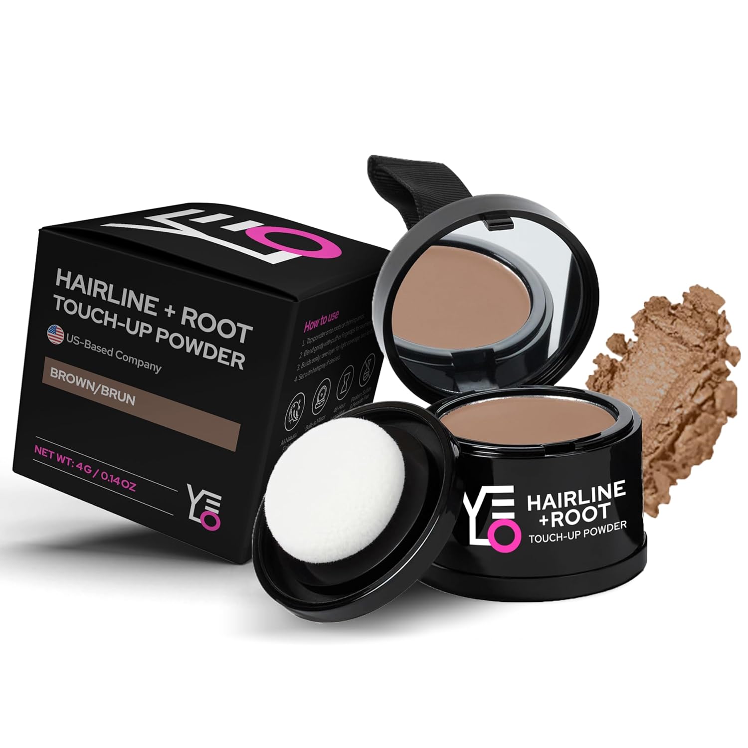- Built-In Mirror & Puff – Touch-Up Anywhere, Anytime: Travel-ready and effortless. This compact root coverup powder with a mirror and puff makes touch up hair color for women quick and clean. No brushes, no mess—just tap and go