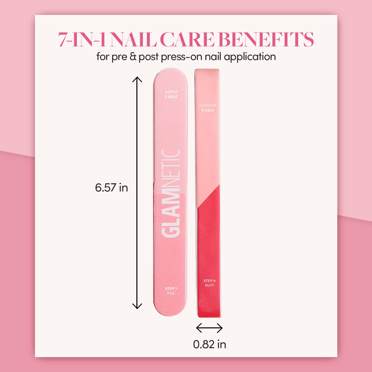 - Make Your Press-On Nails Last Longer: By using the multisided nail buffer, the Glamnetic Brush-On Nail Glue will adhere to your natural nails more than ever before. Additionally, it is highly effective to remove unwanted oils & nail ridges.