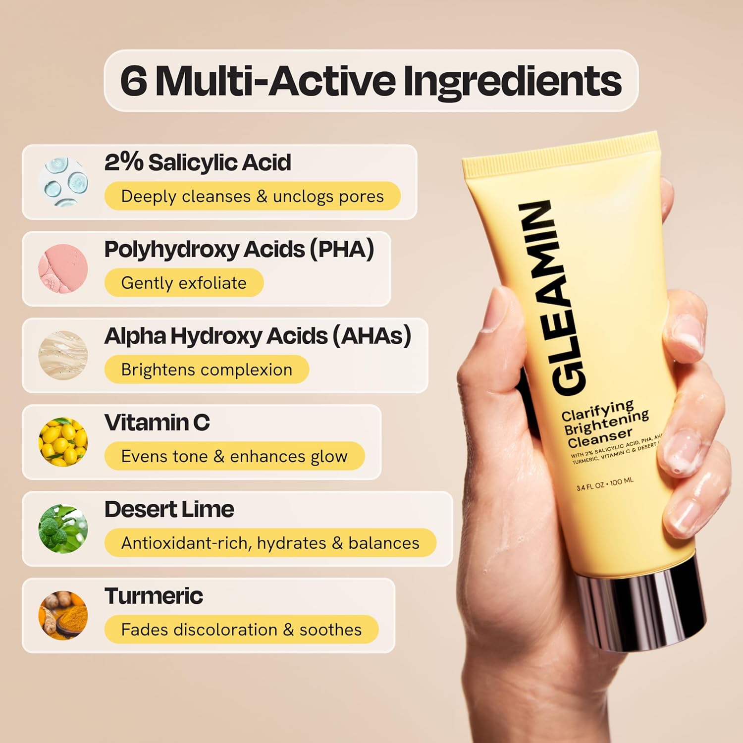 - Balances Oil & Hydrates - The Gleamin face cleanser is designed for oily and combination skin, deeply cleansing without stripping moisture to help reduce excess shine while acting as a gentle facewash for a soft, balanced complexion.