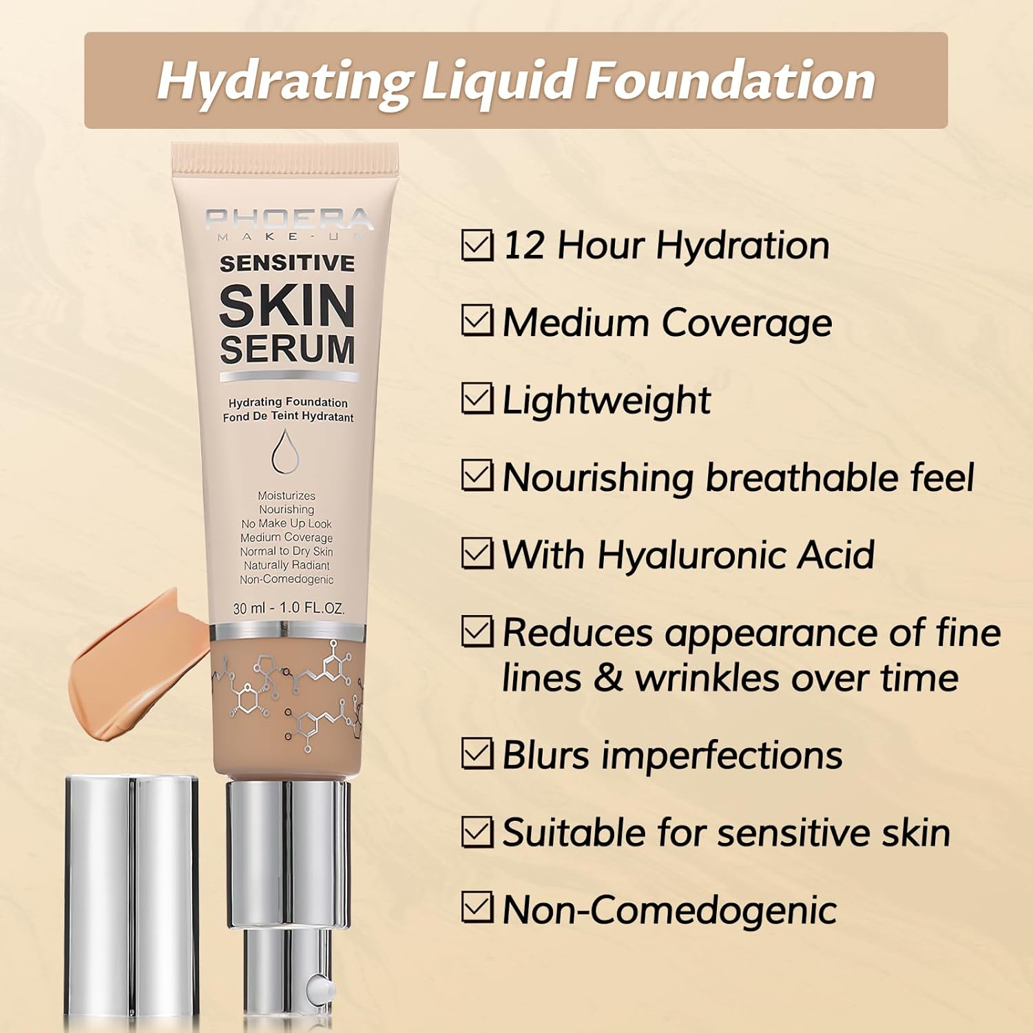 Phoera Foundation Makeup,Flawless Soft Matte Full Coverage with Matte Finish,Hydrating Serum Foundation,Face Makeup for Normal and Dry Skin(N02 Nude, 1PC)