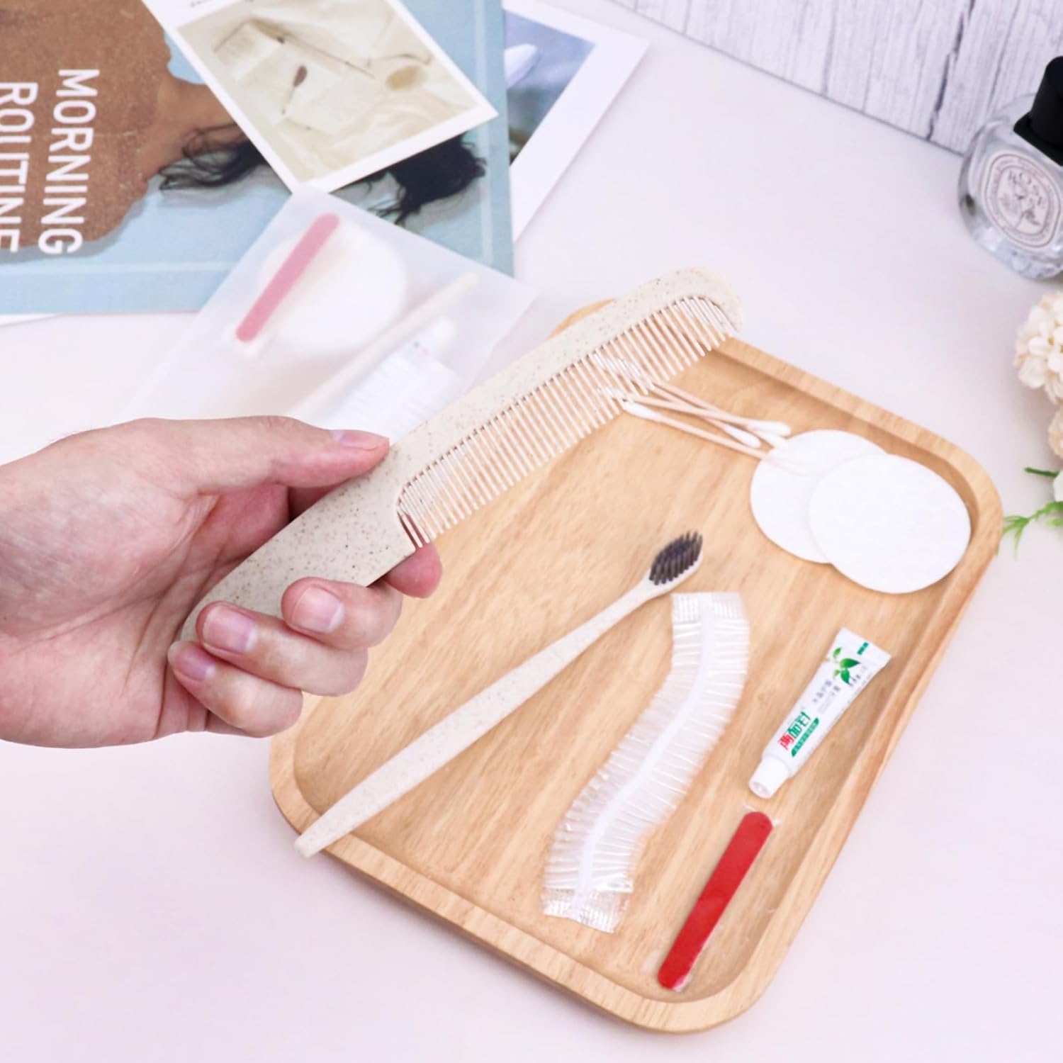 - More sets to match: our hygiene travel kit comes in a pack of 50 sets. Each travel size hygiene products bulk set consists of a disposable Toothbrush, toothpaste, care package, comb, shower cap. personal care travel size toiletries make it even more comprehensive, convenient and comfortable to use. The personal care travel size toiletries are comprehensive, convenient, comfortable and secure.