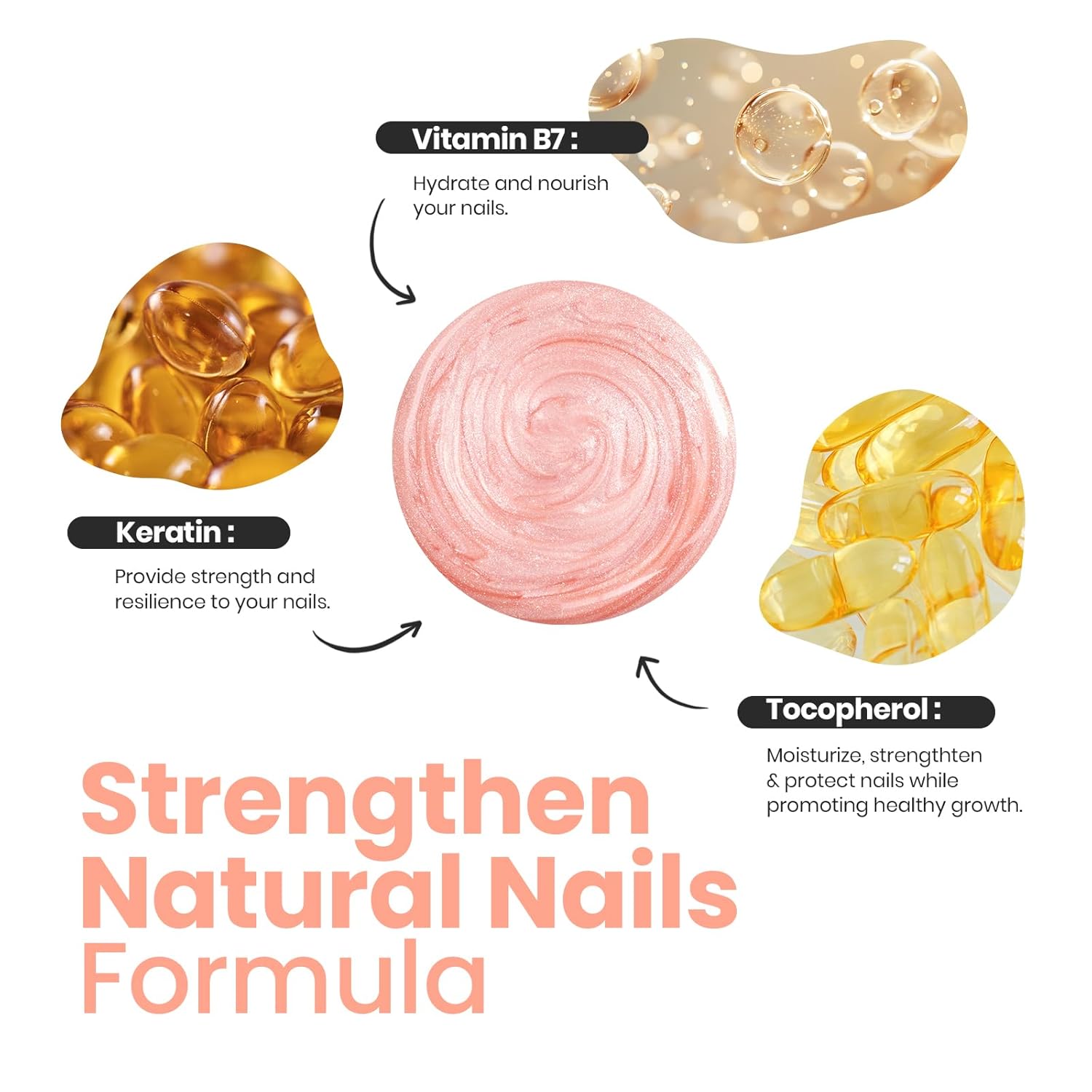- Nourishing Ingredients: Packed with nail-loving ingredients like keratin, vitamin B7, and vitamin E, this polish supports nail health by boosting thickness, hardness, and recovery time.