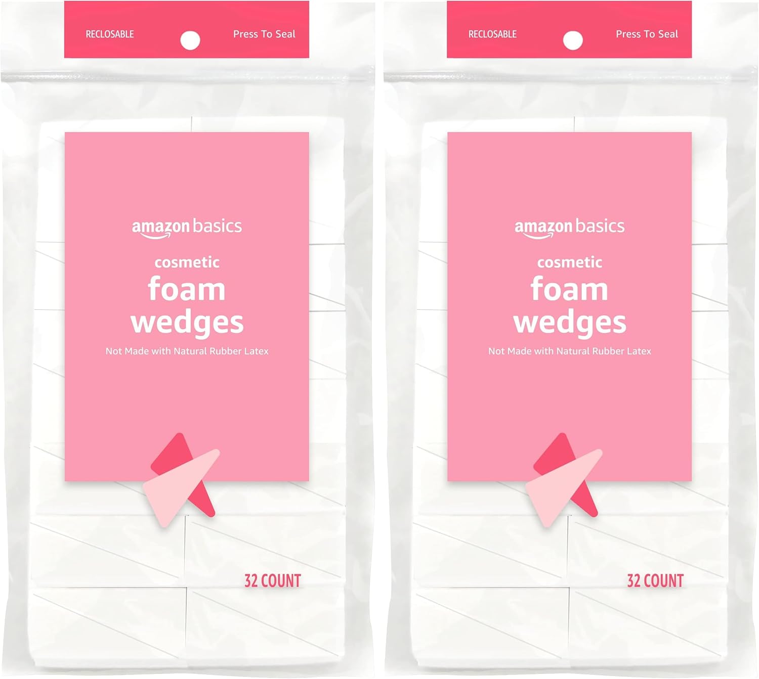 Amazon Basics Cosmetic Rectangular Foam Wedges For Makeup, 32 Count, White (Pack of 2)
