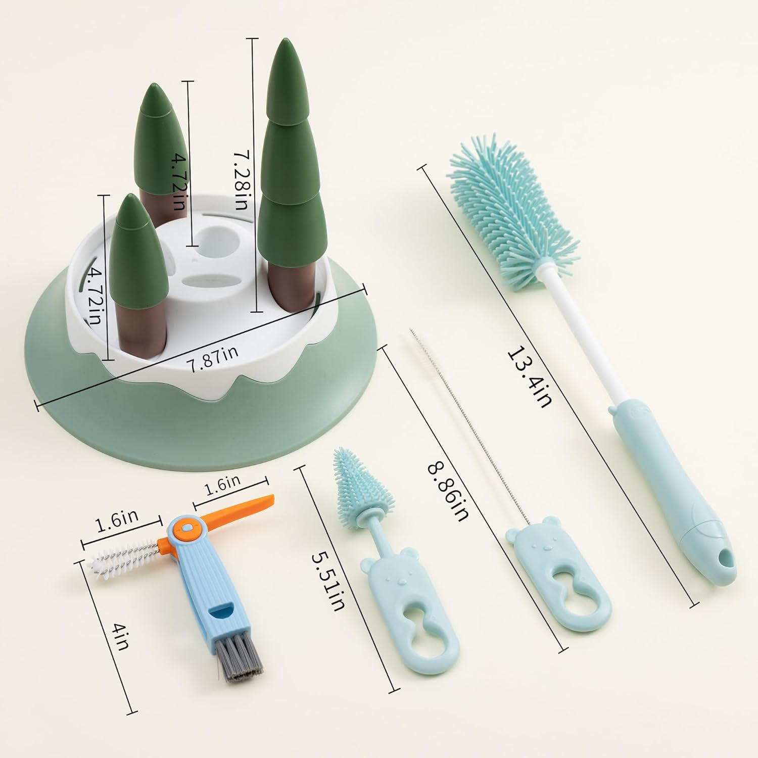 Baby Bottle Drying Rack and Cleaning Set, with Straight Silicone Baby Bottle Brush, Pacifier Brush, Straw Brush, Cup Lid Cleaning Brush, 2025 Xmas Holiday Surprise Gift for Newmom, Z Pink
