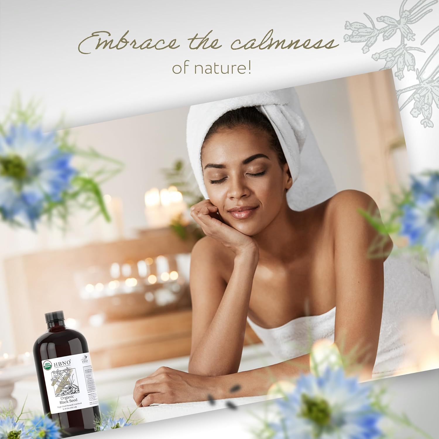 HBNO Organic Black Seed Oil - Huge 32oz (950ml) Glass Bottle Value Size - USDA Certified Organic Black Seed Oil, Cold Pressed for Face, Body, Lips, Shampoo & Conditioner