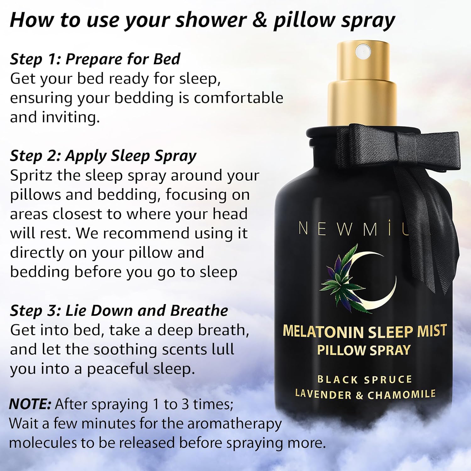 - Transform your bedtime routine with Melatonin Mist Pillow Spray, expertly crafted to promote deep, restorative sleep. Perfect for those who struggle with sleep quality, each spray gently envelops you in a tranquil aroma that calms the mind and soothes the senses, ensuring you wake up refreshed and rejuvenated. Both for men and women.