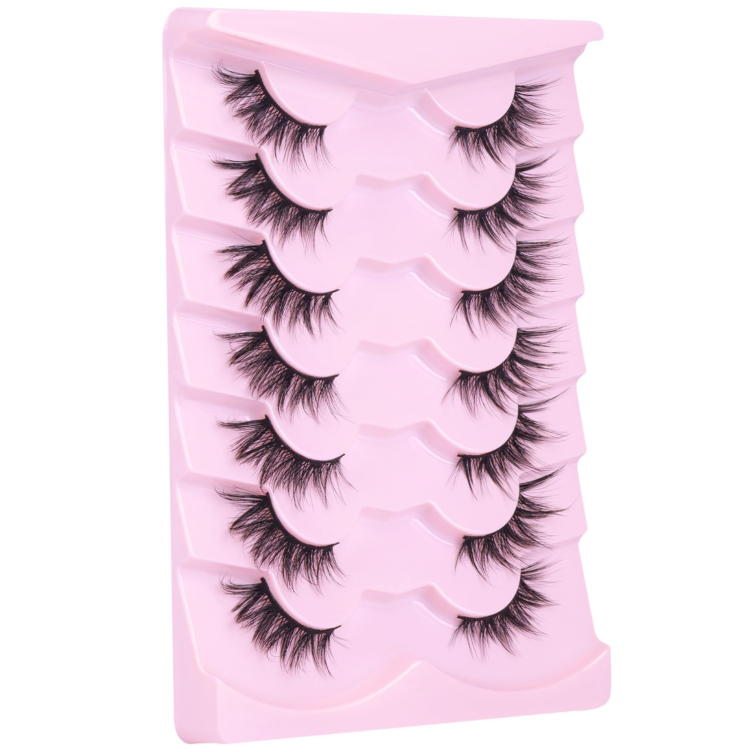 Half Lashes Fox Eye Faux Mink Lashes Wispy Eyelashes Cat Eye 20mm Fake Lashes Spiky Strip Eyelashes Pack 7 Pairs