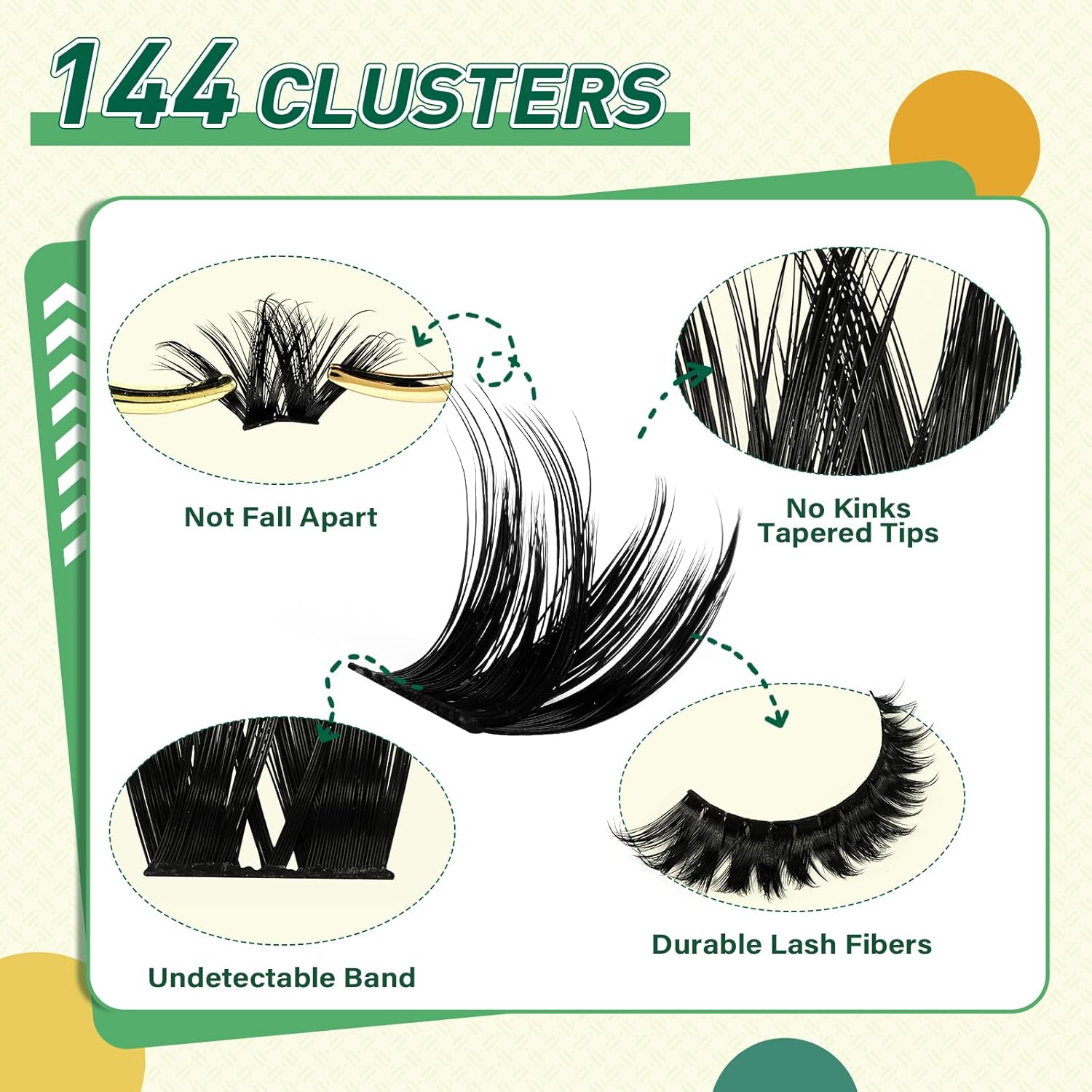 - 【144pcs High Quality Cluster Lashes】The simulated eyelash material is more realistic and will not feel plastic, comfortable and non-irritating on the eyes, allowing you to easily maintain a perfect makeup all day long.