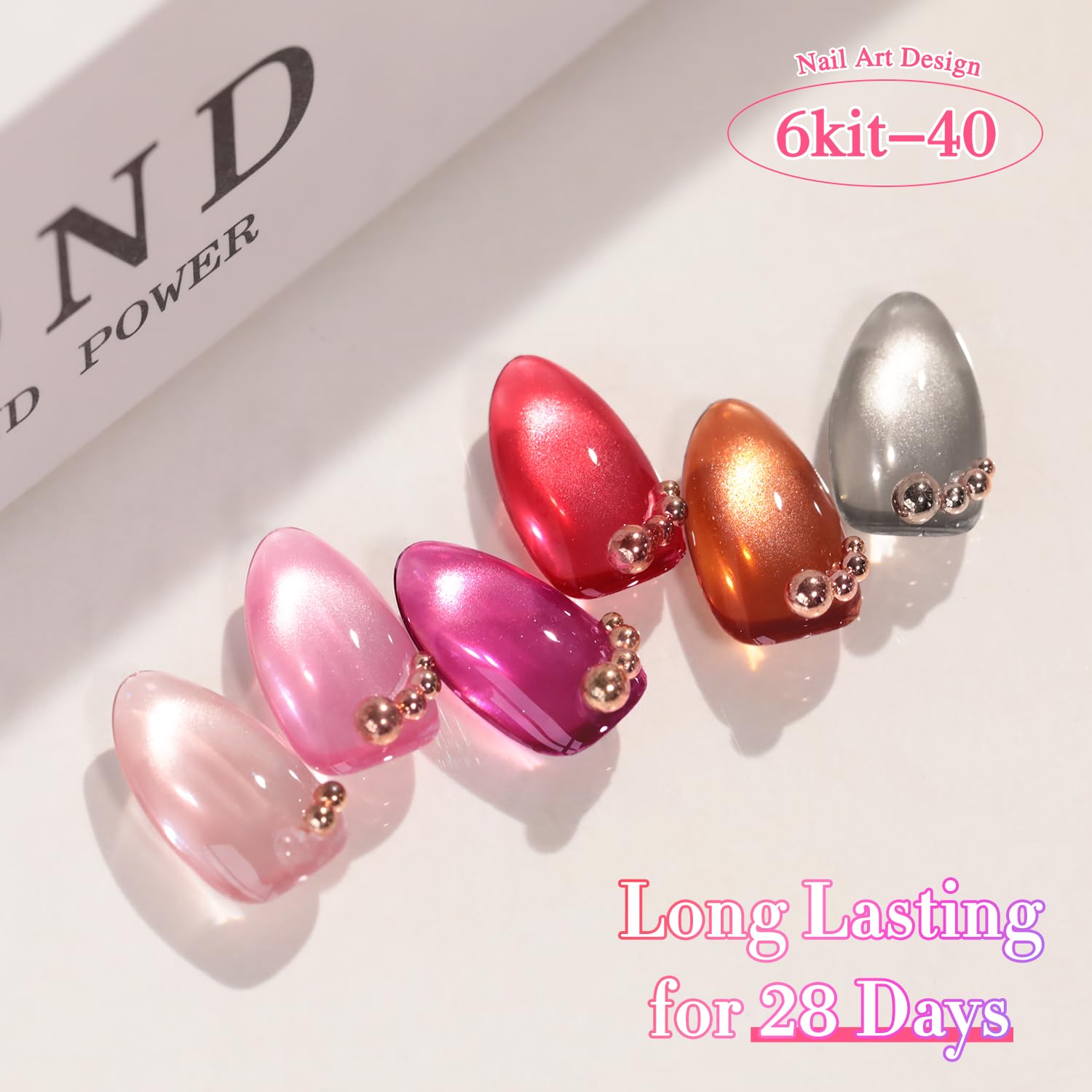 Double Rhythm 6 Colors Cat Eye Gel Polish Set Shimmer Glitter with Magnet Holographic Reflective Magnetic UV Nail Art Kit (6-Kit 40)
