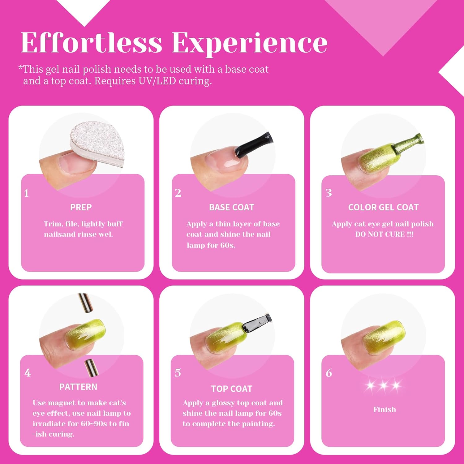 - Our pink purple cat eye gel nail polish is formulated to be long-lasting and durable. It can with stand daily wear and tear, ensuring that your manicure stays flawless for weeks. Say goodbye to chipped or faded nails with our high-performance gel formula.