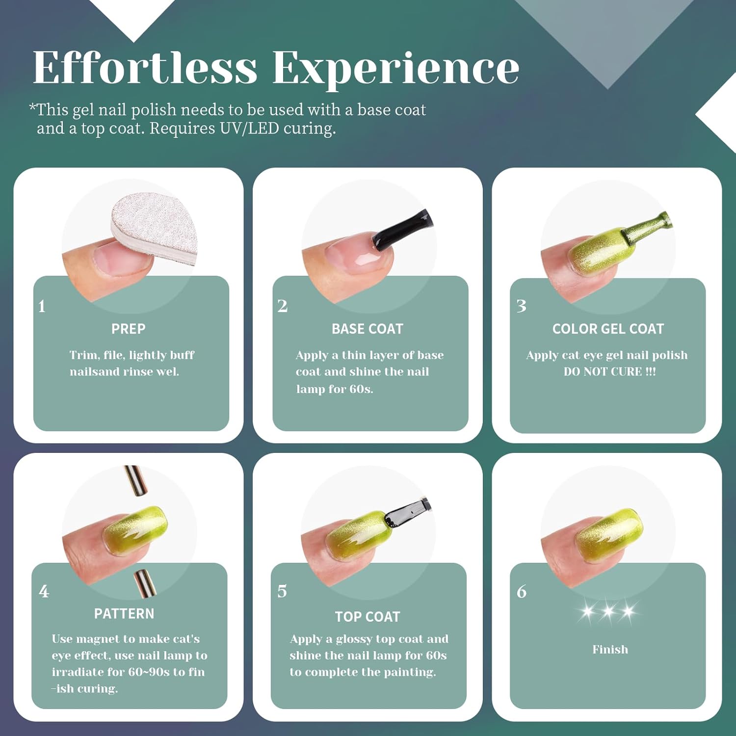 - Our aurora green cat eye gel nail polish is formulated to be long-lasting and durable. It can with stand daily wear and tear, ensuring that your manicure stays flawless for weeks. Say goodbye to chipped or faded nails with our high-performance gel formula.