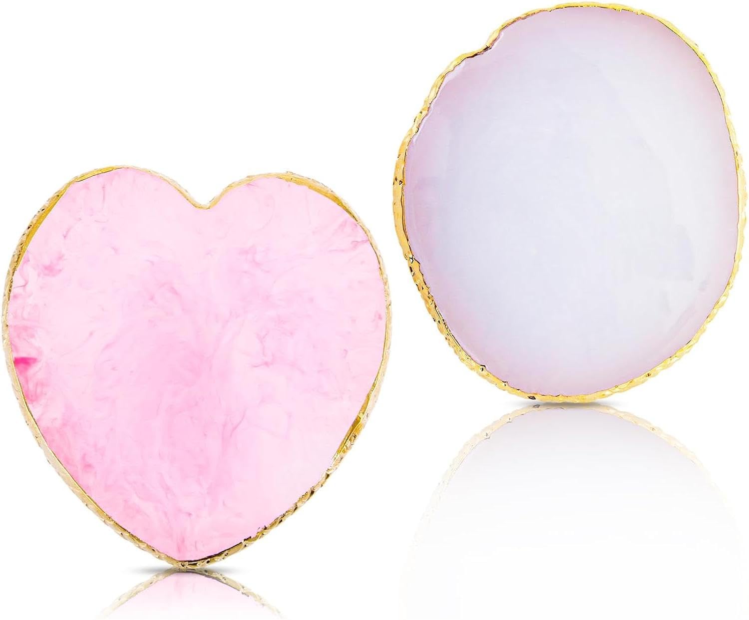 2Pcs Heart-Shaped Resin Nail Art Palette, Gold Edge Round Makeup Mixing Palette, Nail Polish Plate, Nail Art Display Board Makeup Plate Cosmetic Mixing Tools Makeup Palettes