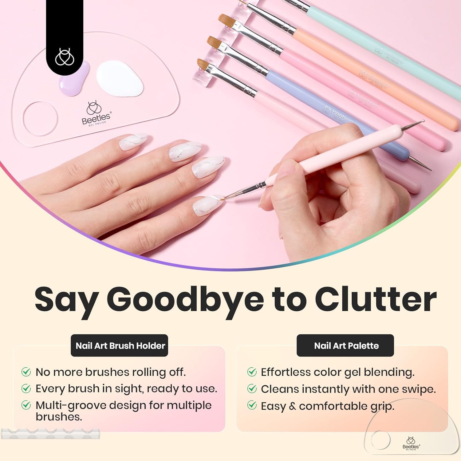 - CONVENIENT DESIGN - The nail art brushes kit includes a holder to hold the nail art liner brushes in place and prevent it from slipping and rolling and includes a palette for color blending, which is easy to clean with a single wipe. The body of nail brushes is light and comfortable, easy to hold and paint, helping create beautiful nail work without any hassle