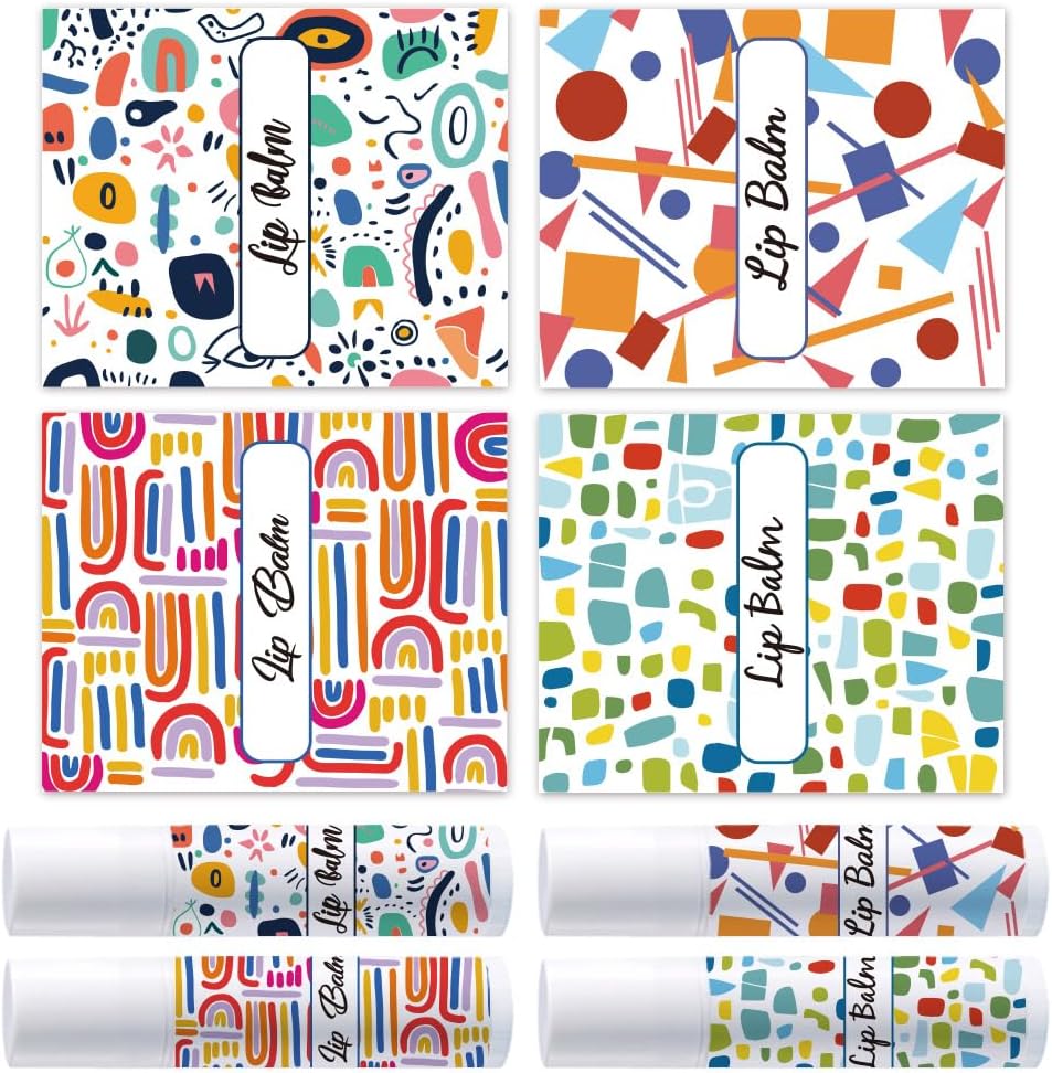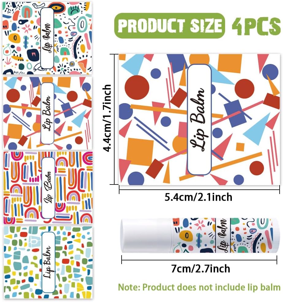 - Ample Quantity--You will get a total of 4 different styles of colorful texture pattern lipstick tube stickers, printed "lip balm", 25pcs/style, 100pcs in total, size size about 54mm/2.1 inch wide, 44mm/1.7 inch long.