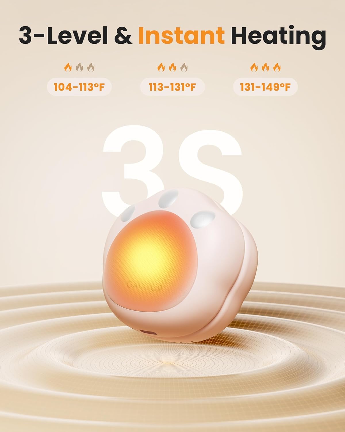 - Fast Heating and 3 Heat Settings: The hand warmers generate a large amount of heat and hot hands in seconds; Each with 3 heat settings, adjust the temperature to your comfort level, the temperature range from 104 Β°F to 149 Β°F In 1st to 3rd level