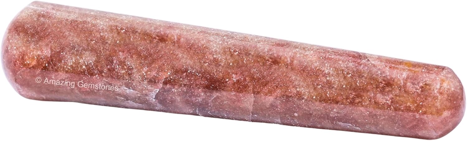 Amazing Gemstone Strawberry Quartz Crystal Wand Massage Stick - Pelvic Wand Gua Sha for Adults - Crystals and Healing Stones Massage Wands for Adults Gifts (Smooth)