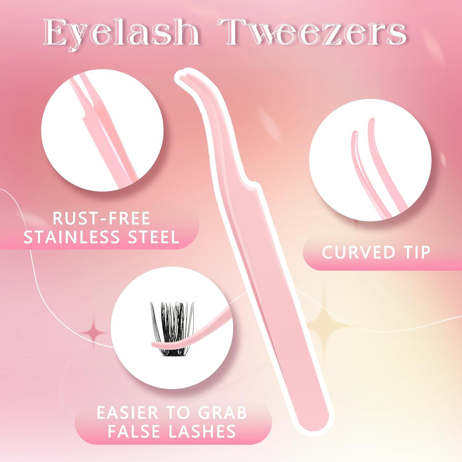 - 【DIY lash extension Kit】:DIY lash extension kit includes:1 tray mix length cluster lashes,1 lash bond and seal(2 in 1),1 Cluster Lashes Glue Remover1 lash applicator tweezer. Our DIY lashes kit includes all the necessary tools. Achieving the perfect extension look with our DIY eyelash extension kit