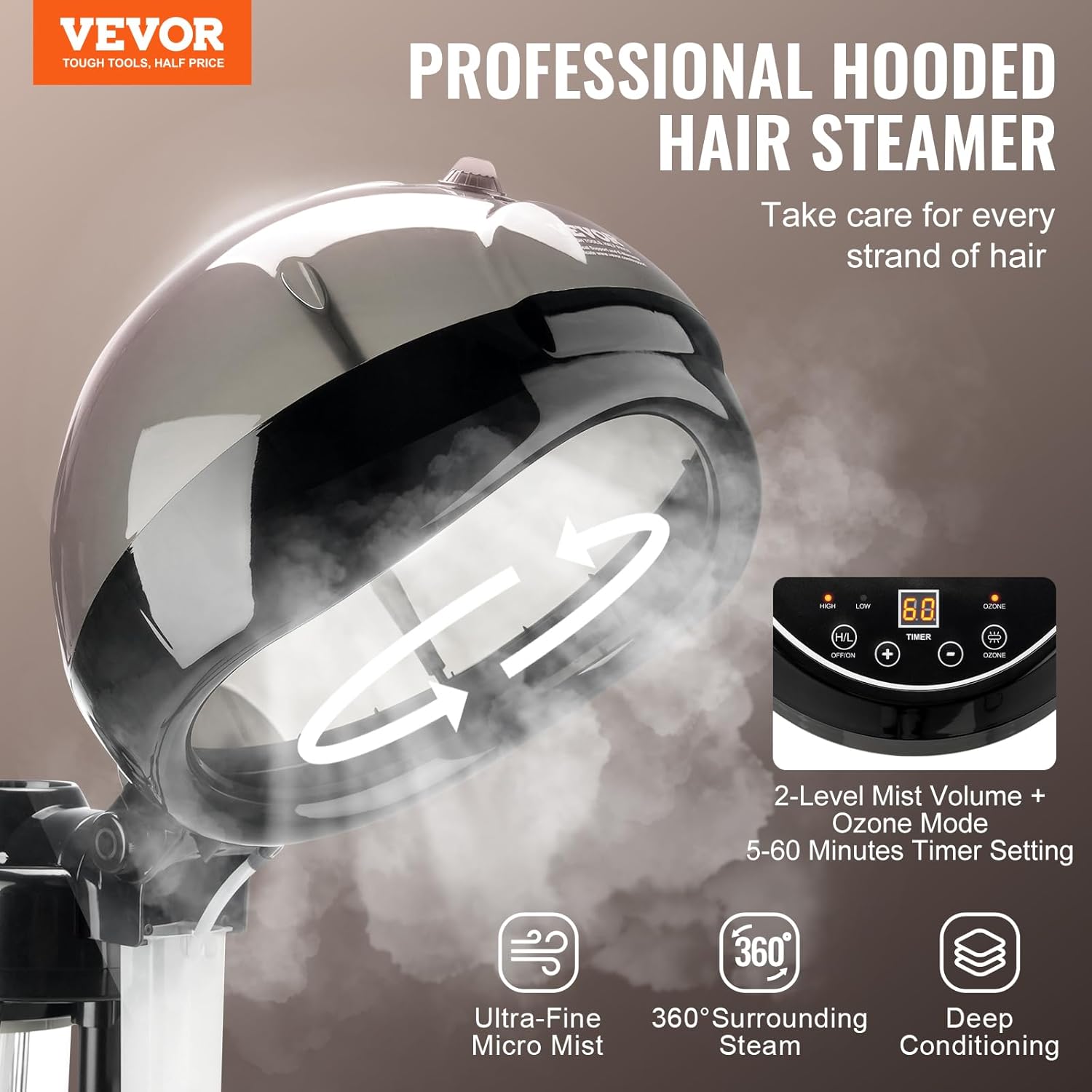 - Perfect for Salon/Home Use: VEVOR lonic hooded hair steamer is not only the ideal choice for professional hair salons, but also a reliable assistant for home hair care: hair oil treatment, perming, and dyeing. Enjoy salon-level care for your hair in the comfort of your own home.
