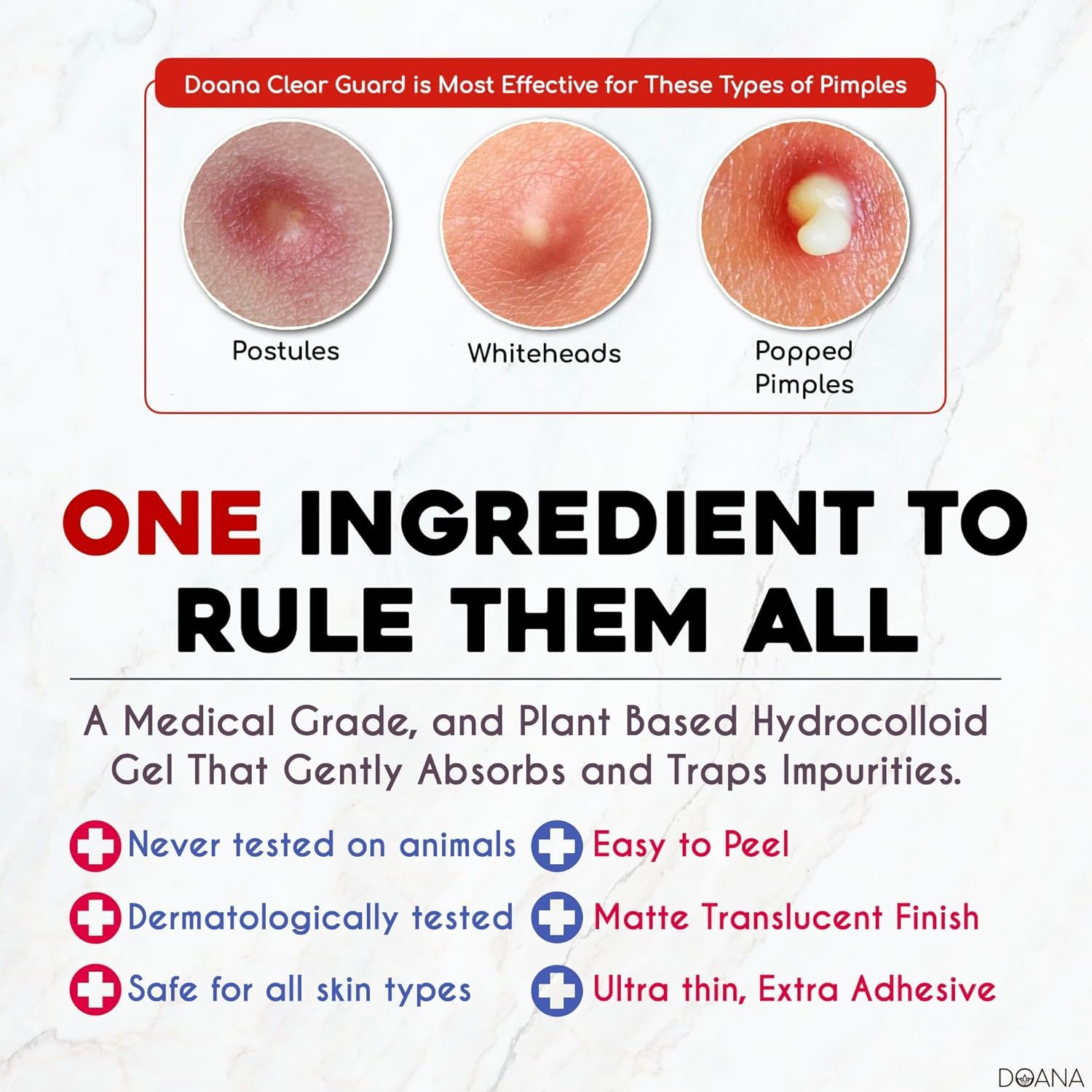 - Doana Clear Guard patch is a hydrocolloid sticker designed to enhance the appearance of pimples overnight, eliminating the need for popping. Simply apply it before bed, and wake up to clearer-looking skin.