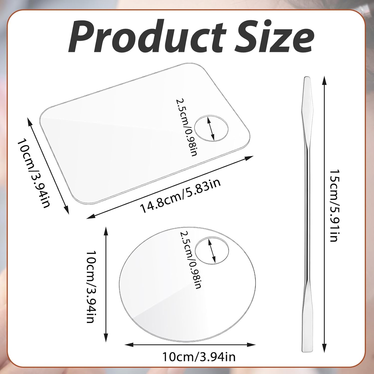 3 Pcs Acrylic Makeup Palette with 3Pcs Makeup Spatula, Makeup Palette Tray Apply for Foundation Eye Shadow Lipsticks Nail Art Professional Pigment Blending